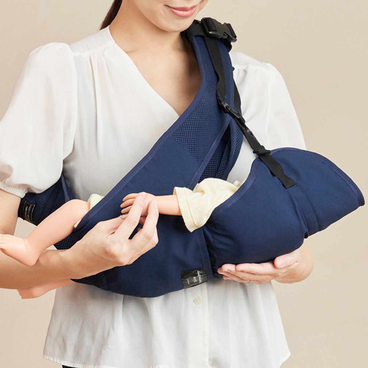 寝かせ抱きは安定しやすく、関節の柔らかい赤ちゃんにも負担がかかりません。誕生してからすぐにお使いいただけます。