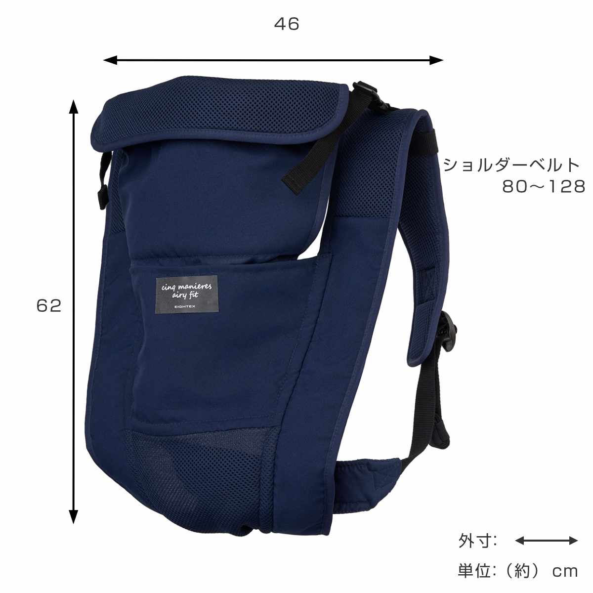 | サイズ | 本体:約 縦62×横46(cm) ショルダーベルト:約 長さ80~128(cm) ブリッジベルト:約 21~53(cm) ピロー:約 縦10×横25×厚み4(cm) |