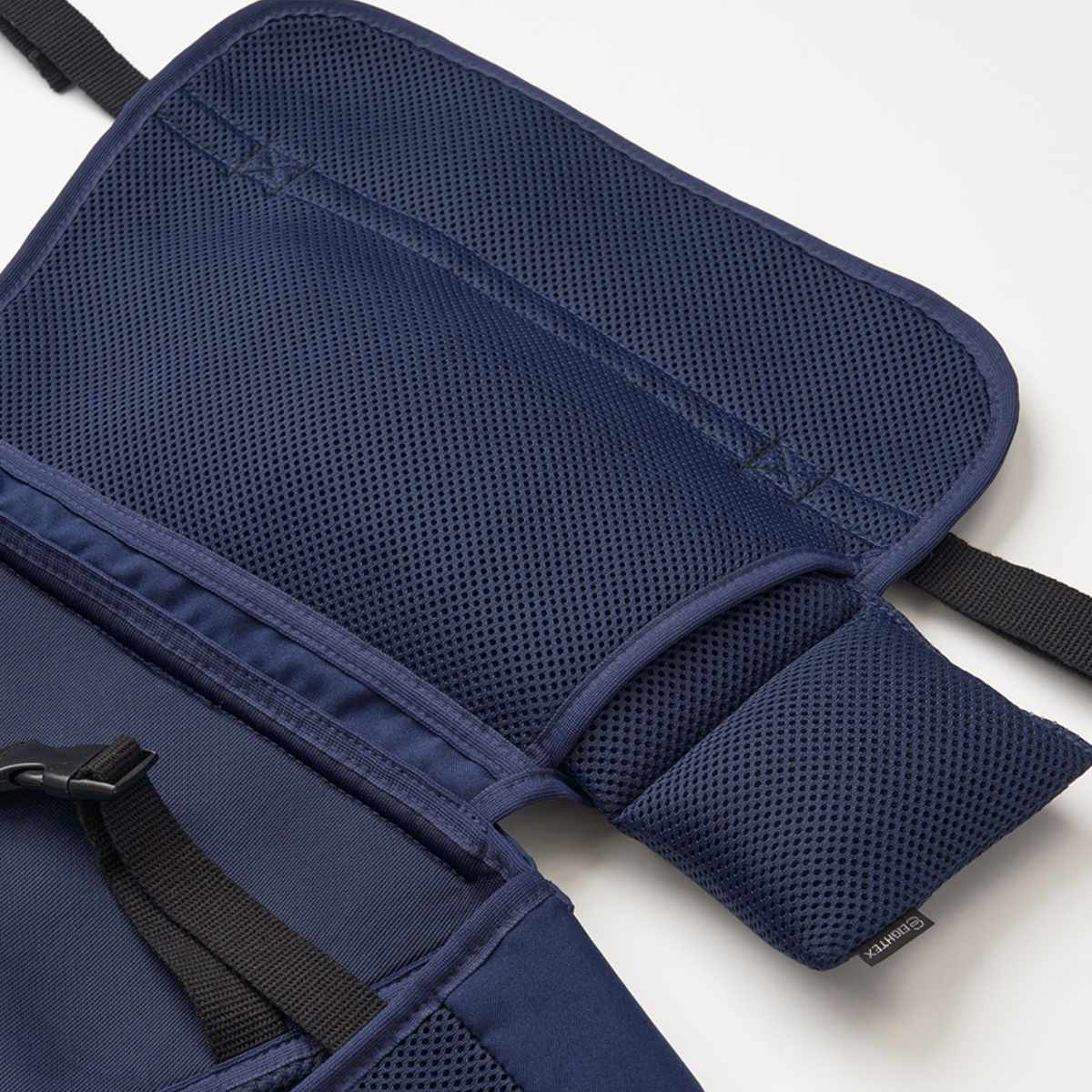 メッシュ生地で通気性に優れ、暑い日でも快適にお使いいただけます。ポケットの内側のゴムで本体をコンパクトにまとめらるので、持ち運びやすいです。
