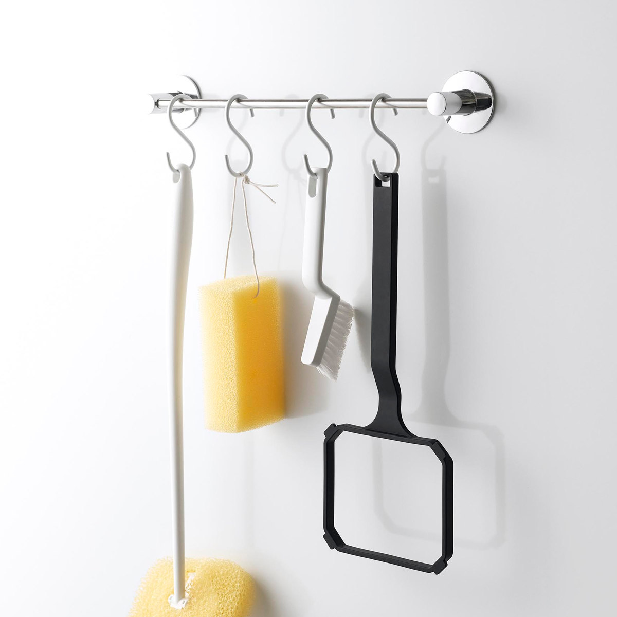 持ち手の先端に穴が開いているので、浴室や脱衣所のタオルバーにフックで引っ掛けて収納もできます。