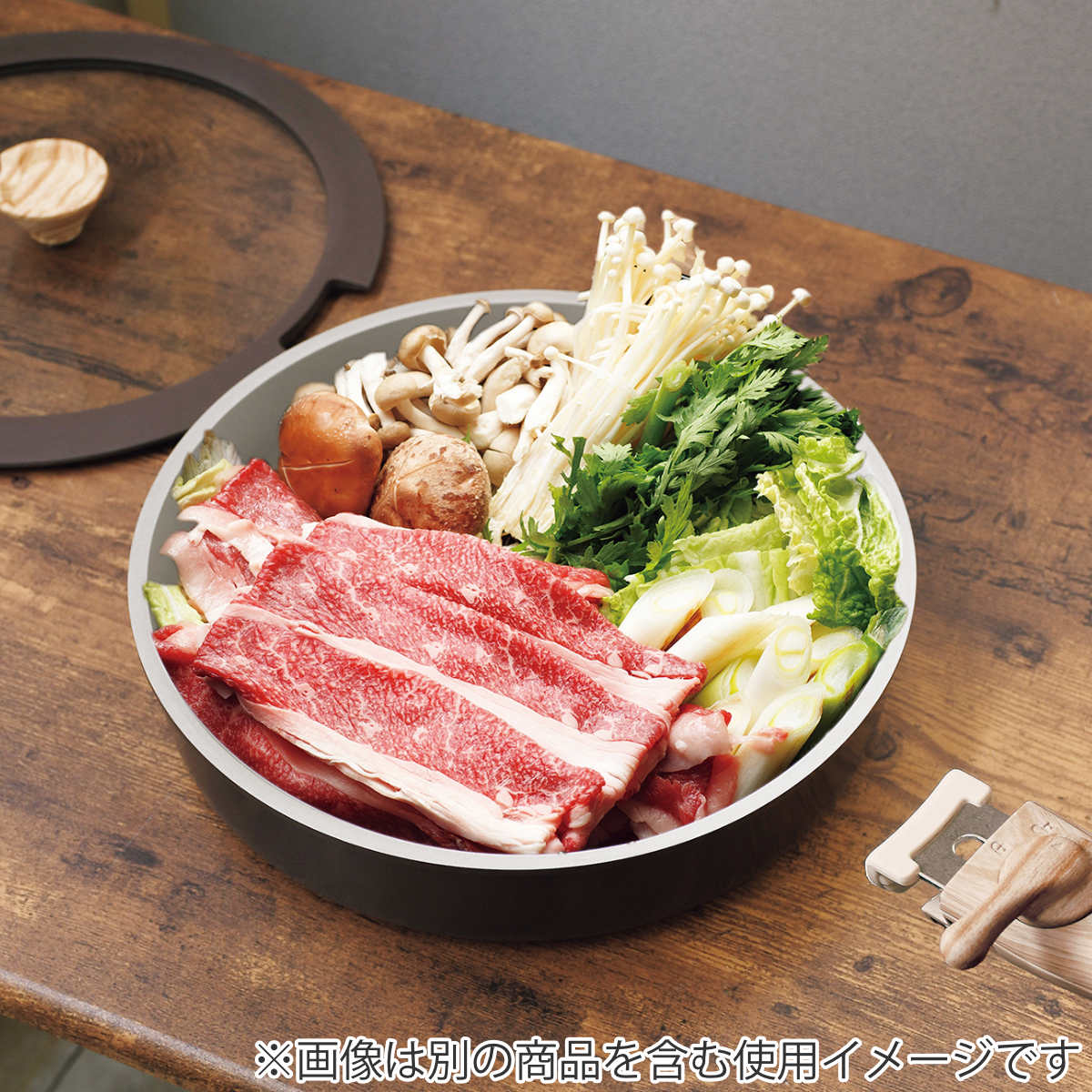 調理から片付けまで快適に使える、取っ手が取れるすき焼き鍋です。卓上でのすき焼きはもちろん、焼く、煮る、炊く、オーブン調理など様々な場面で活躍します。ガス火、IHなどオール熱源に対応しています。