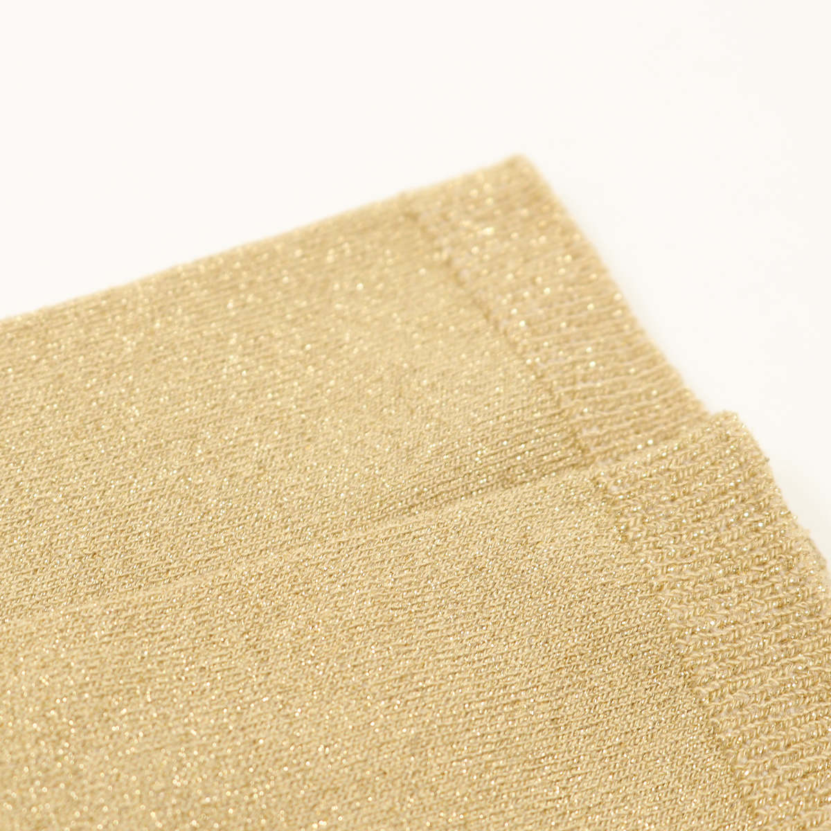 メタリックファイバーを編み込んだ、上品な煌めきのあるショートソックスです。一般的なメタリックファイバーより細めのファイバーを使用しています。