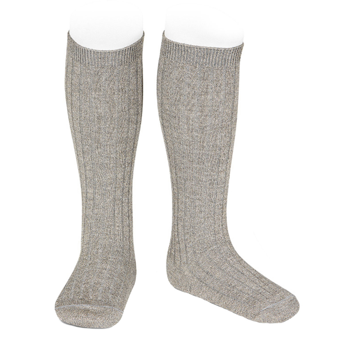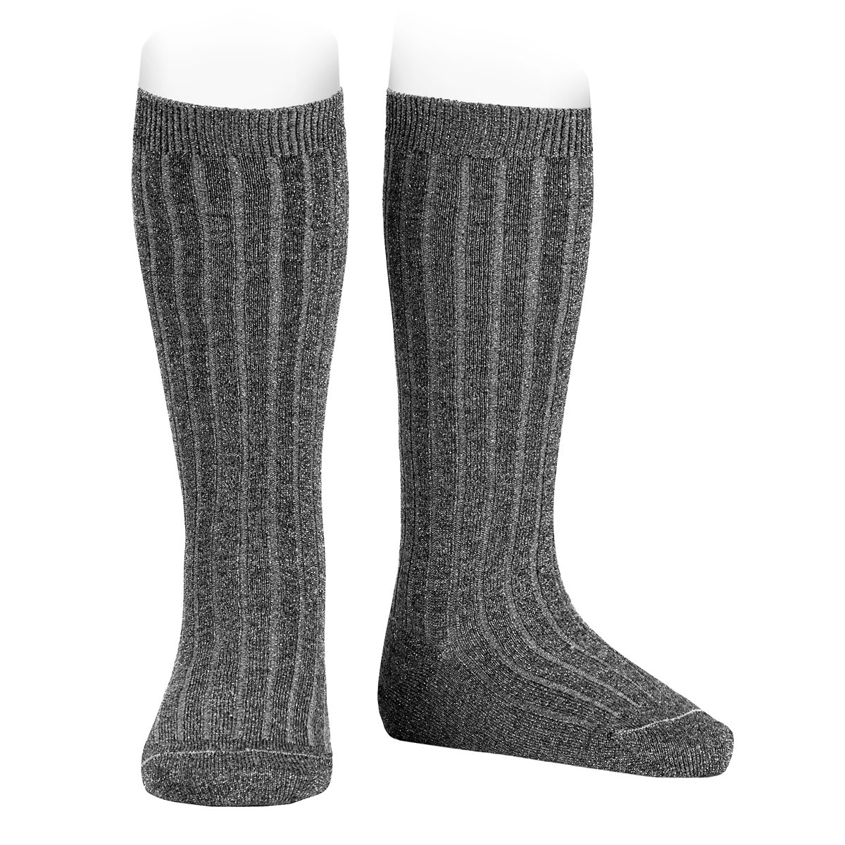 靴下 condor レディース 24.5~25.5cm ブライト リブ ニーソックス ( コンドル ソックス 大人 くつ下 くつした リブソックス ハイソックス 大人用 丈夫 ラメ スペイン製 おしゃれ ギフト ) 【グリスクラーロ】
