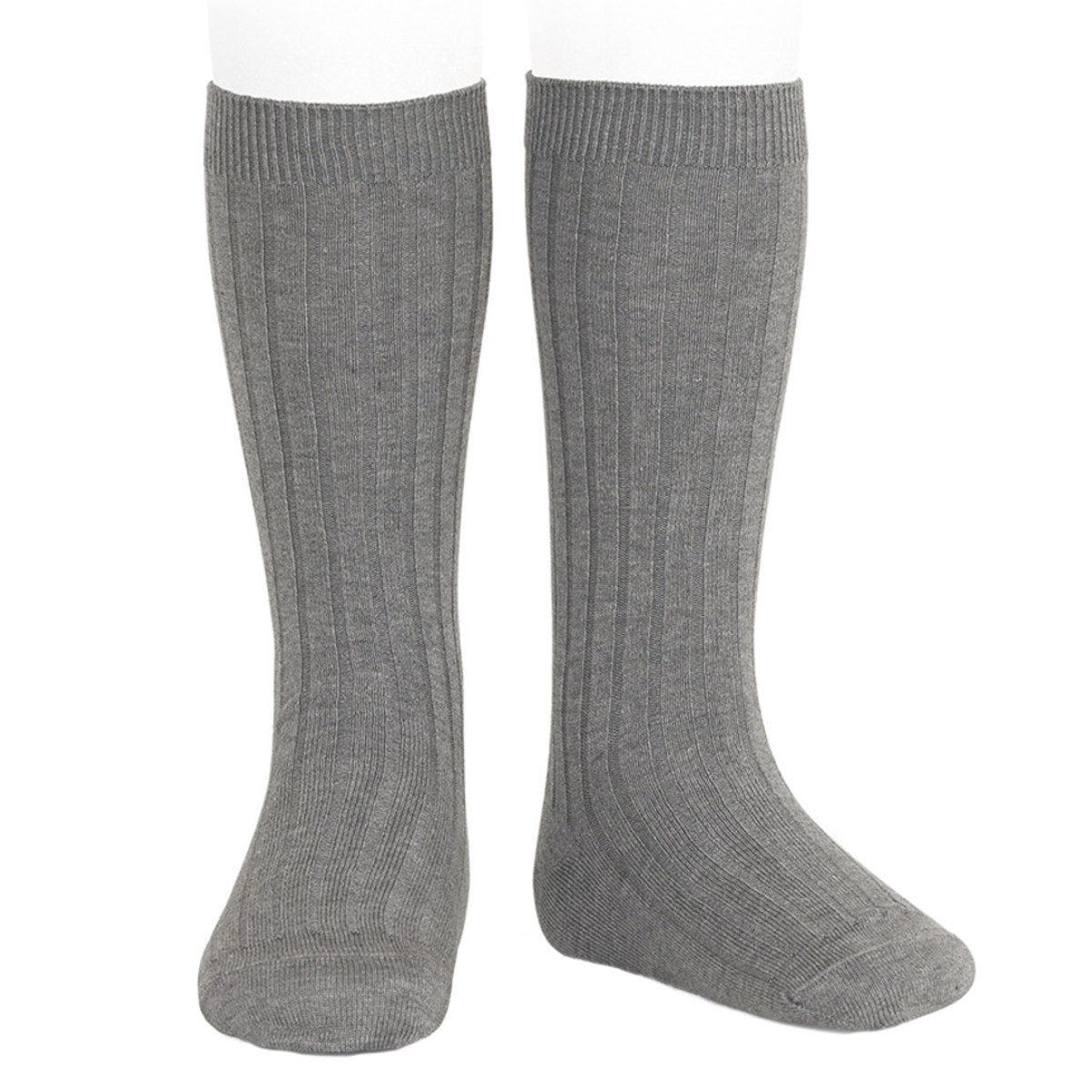 靴下 condor レディース 24.5~26.5cm ベーシック リブ ニーハイソックス ( コンドル ソックス くつ下 くつした コットン 大人 丈夫 ハイソックス リブソックス スペイン製 手触り 滑らか 無地 女性 おしゃれ ギフト ) 【グリスクラーロ 12】
