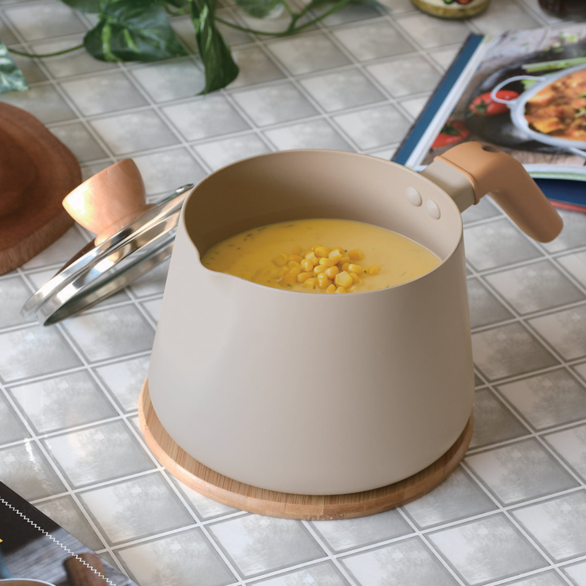 やさしいベージュカラーが可愛いマルチポットです。スープやお味噌汁作りはもちろん、揚げる、煮る、炒める、茹でるなど、これ1つで様々な調理が可能です。ガス火はもちろん、IHクッキングヒーターやハロゲンヒーターなどオール熱源に対応しています。