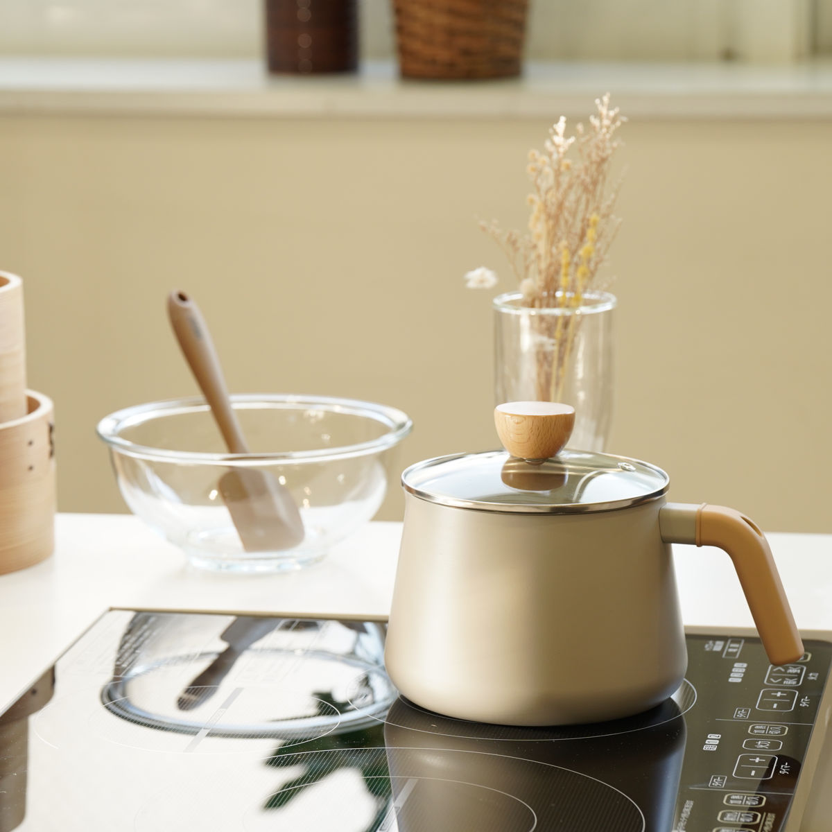 やさしいベージュカラーと天然木が魅力の「スプル」シリーズです。温かみのあるデザインで、毎日の料理を心地よく楽しくしてくれます。マルチポット、片手鍋や両手鍋と豊富なラインナップとなっており、シリーズで揃えてお使いいただくことで、よりナチュラルテイストなキッチン空間をつくれます。