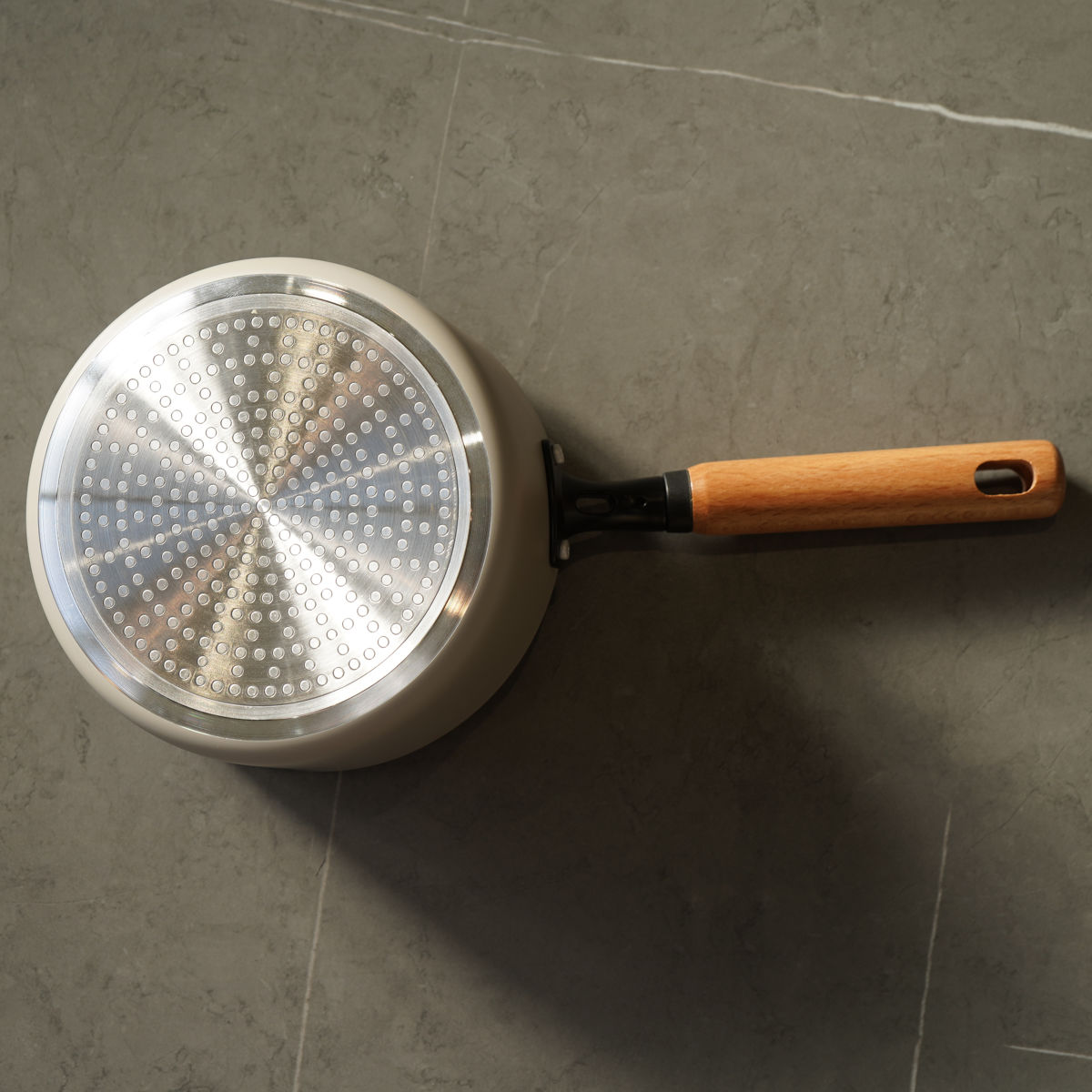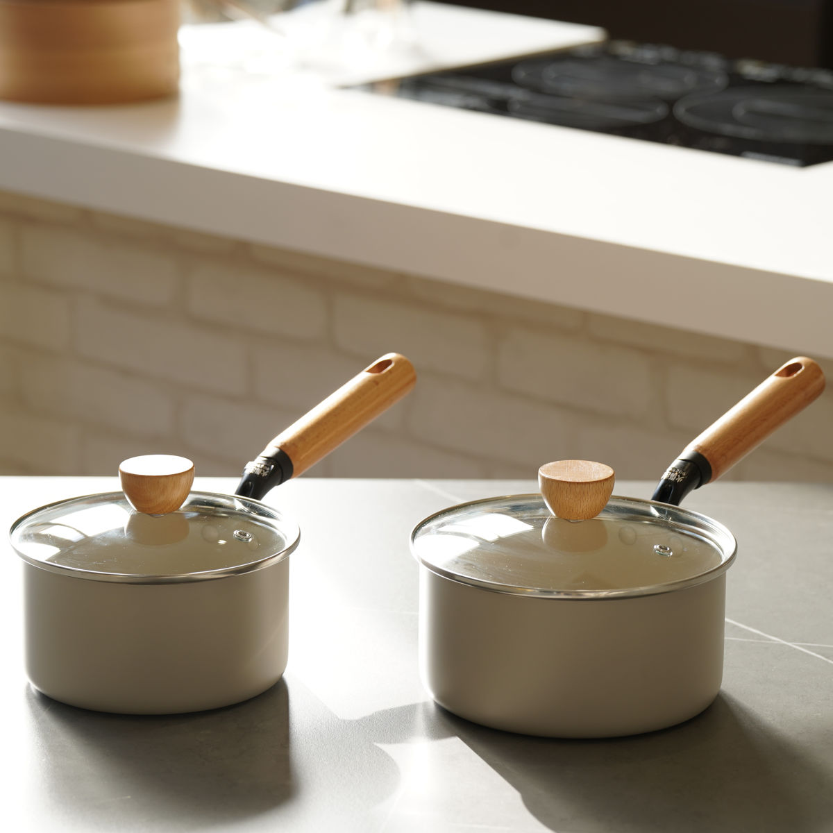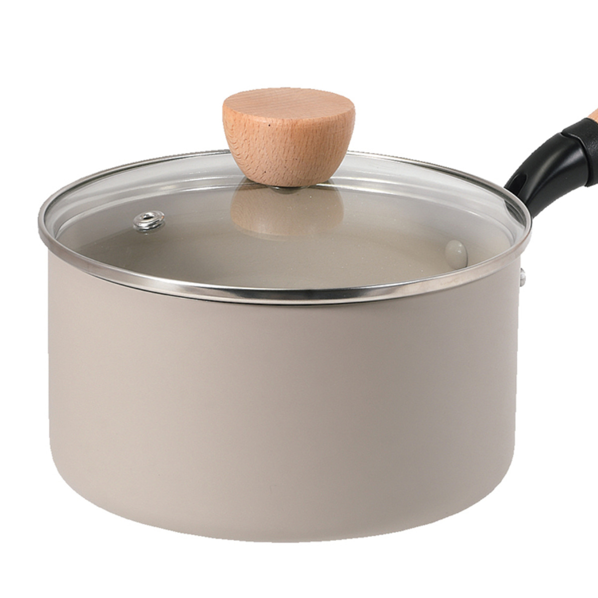 やさしいベージュカラーとあたたかみのある天然木を組み合わせた、可愛い片手鍋です。1~2人分の料理や即席ラーメンを作るのにちょうどいい、コンパクトなサイズ感です。