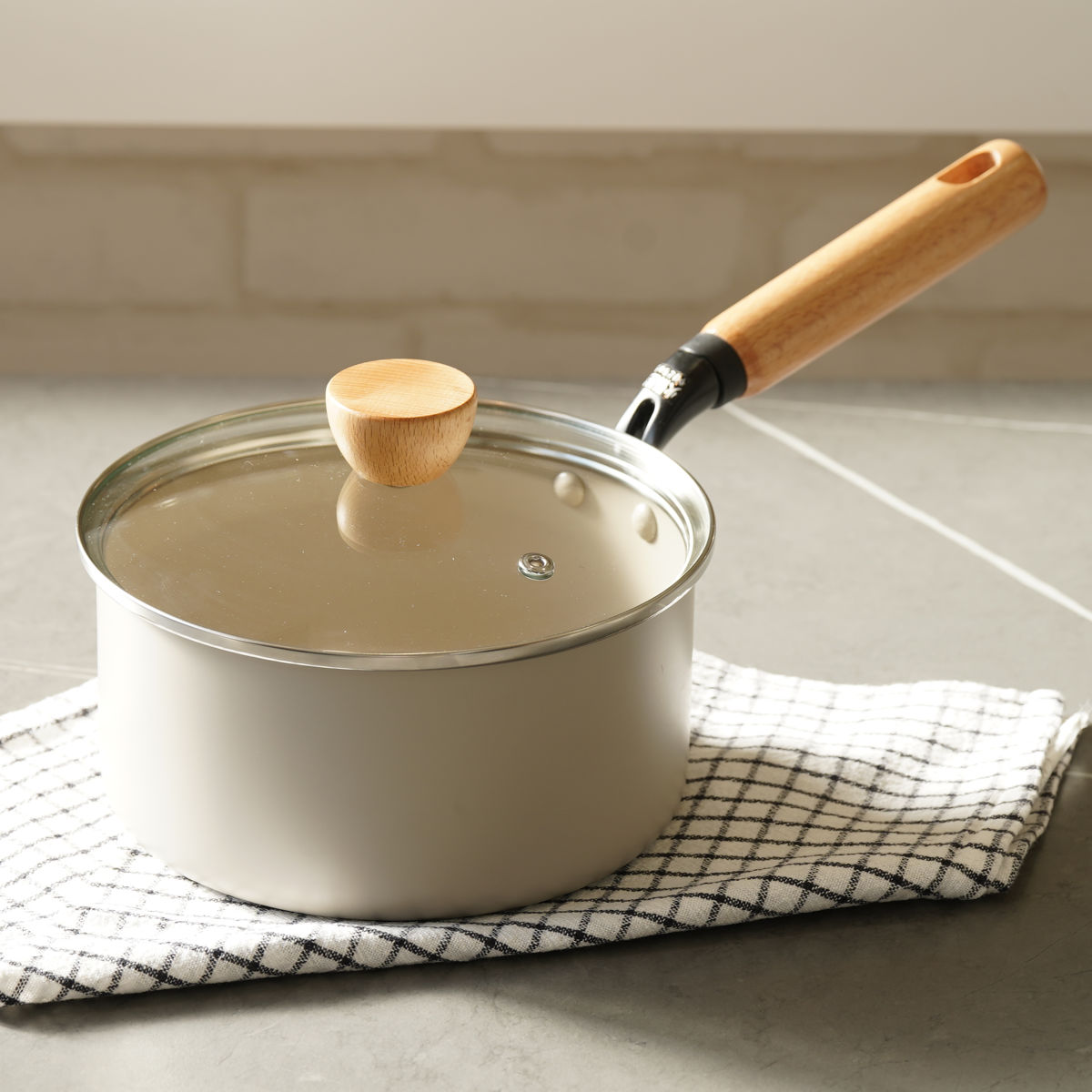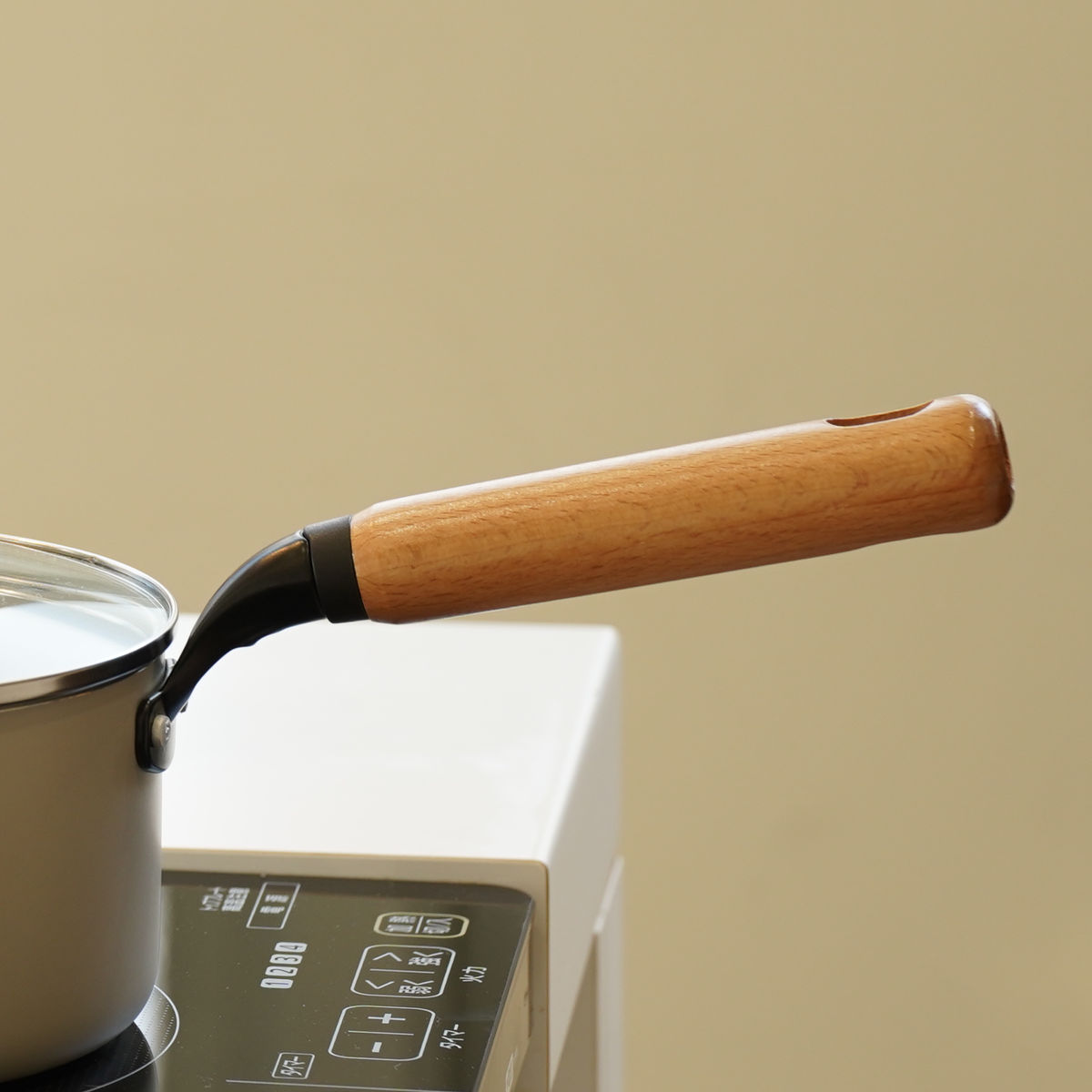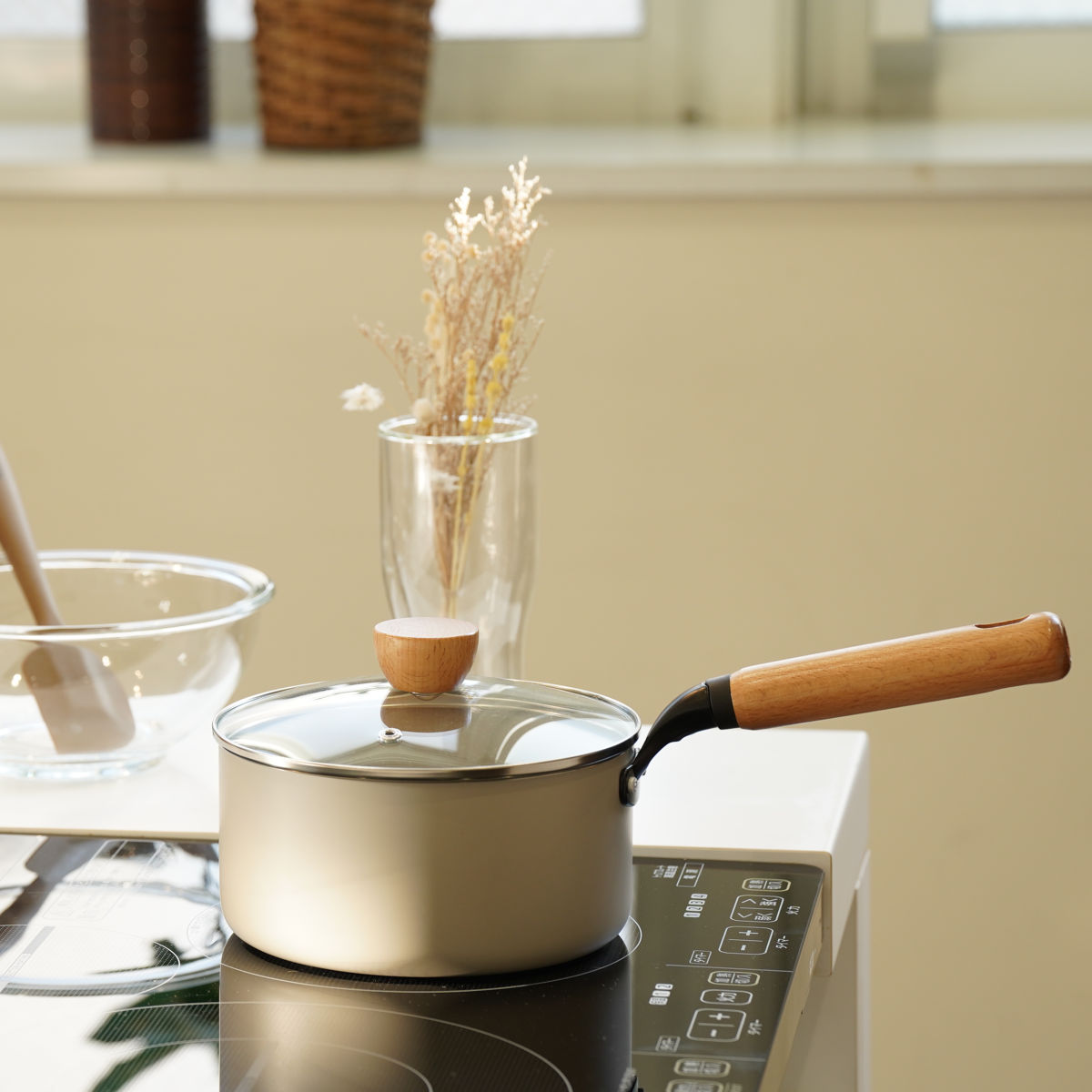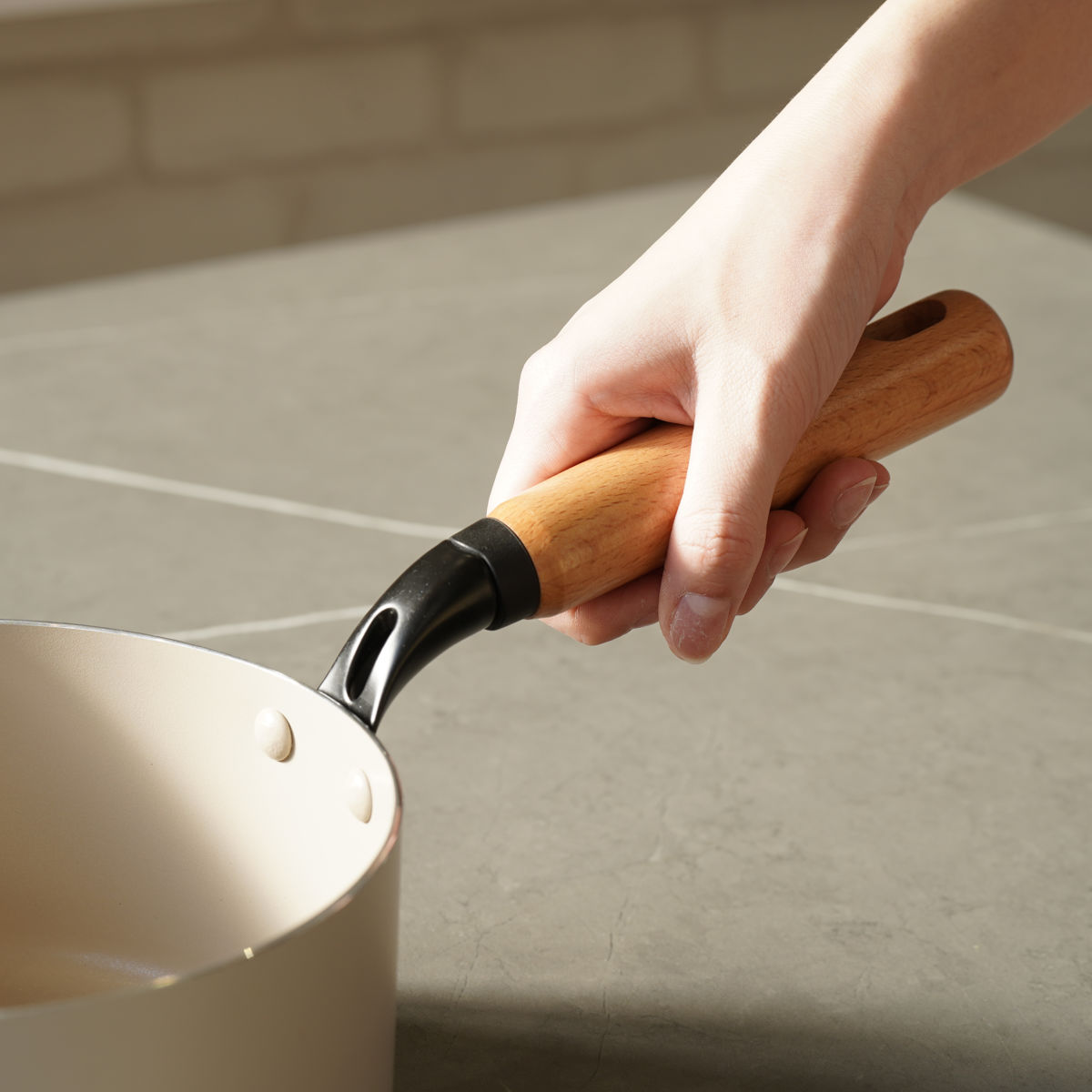 やさしいベージュカラーとあたたかみのある天然木を組み合わせた、可愛い片手鍋です。2~3人分の料理にちょうどいいサイズ感で、スープや煮物、カレー作りなど幅広く使えます。