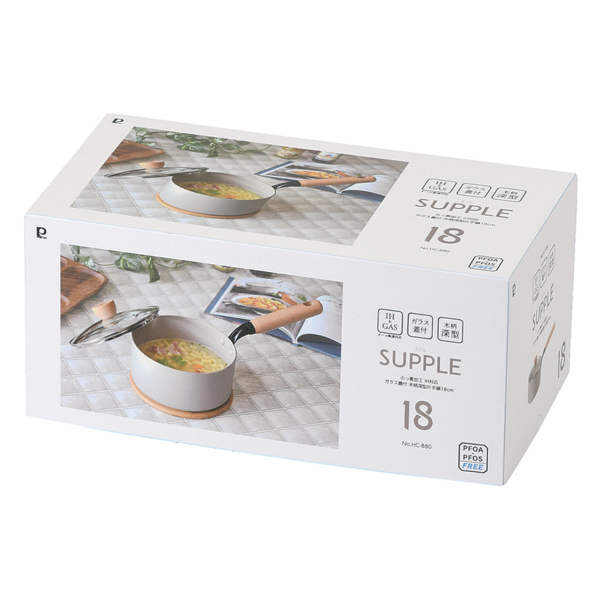 片手鍋 18cm 深型 IH対応 ガラス蓋付き スプル ( ガス火対応 オール熱源対応 ソースパン なべ 軽量 アルミ フッ素加工 こびりつきにくい ガラスふた付 ミルクパン 木製ハンドル 軽い おしゃれ かわいい )