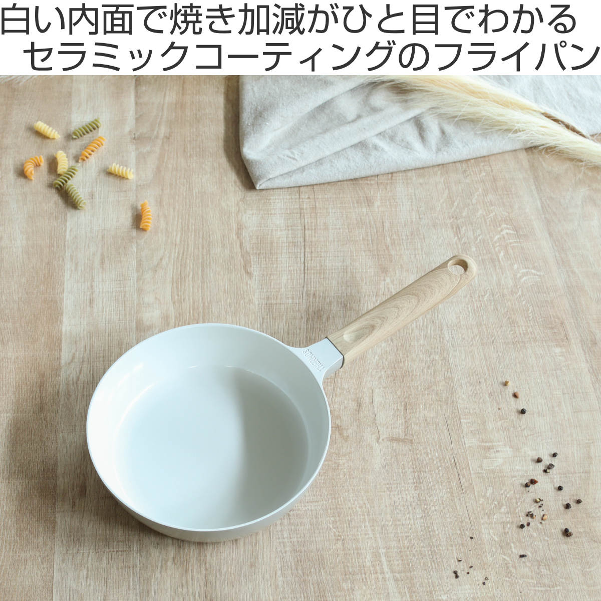 サーモス フライパン 20cm IH対応 セラプロテクト セラミック ( THERMOS ガス火対応 片手鍋 炒め鍋 セラミック加工 軽い 深型 軽量 丈夫 長持ち PFOA&PFOSフリー セラプロテクトコート グレージュ 木目調ハンドル ノンスティック )