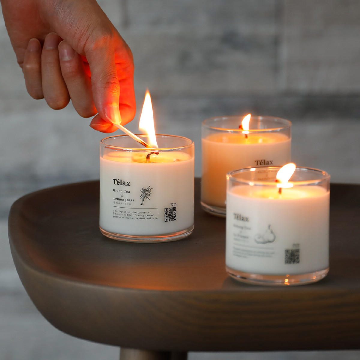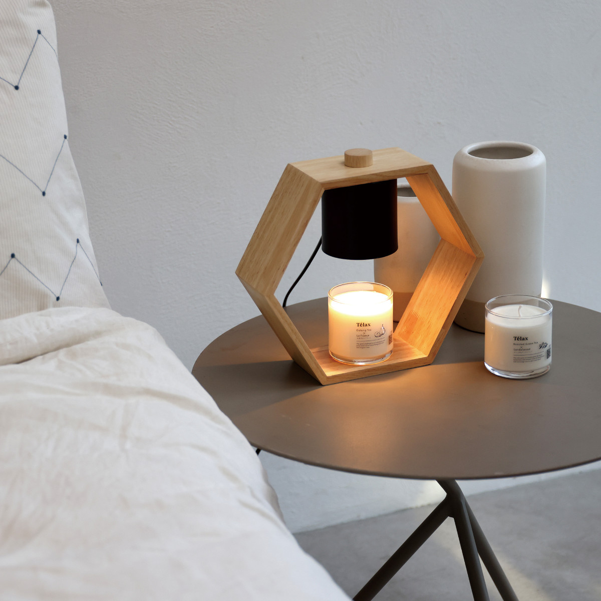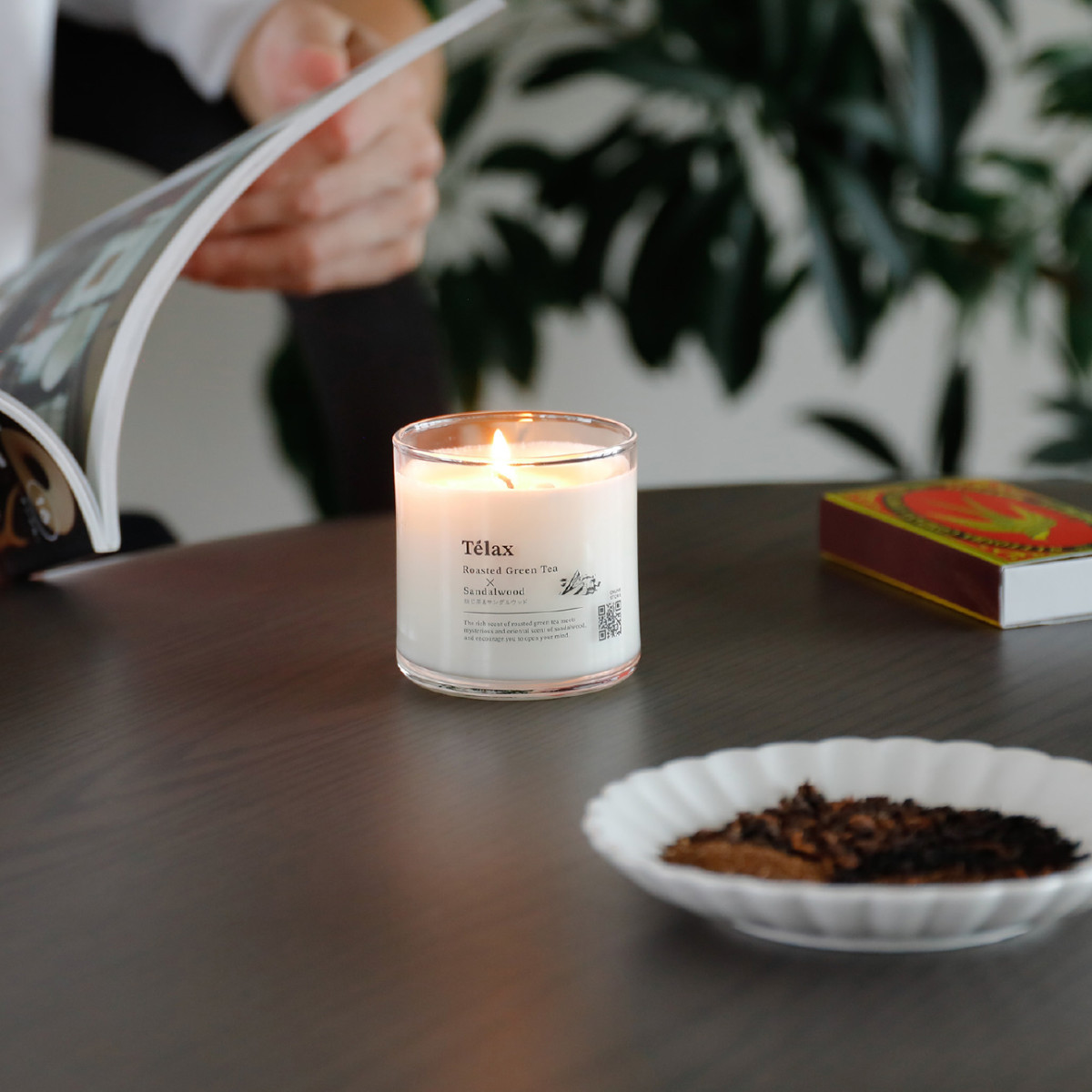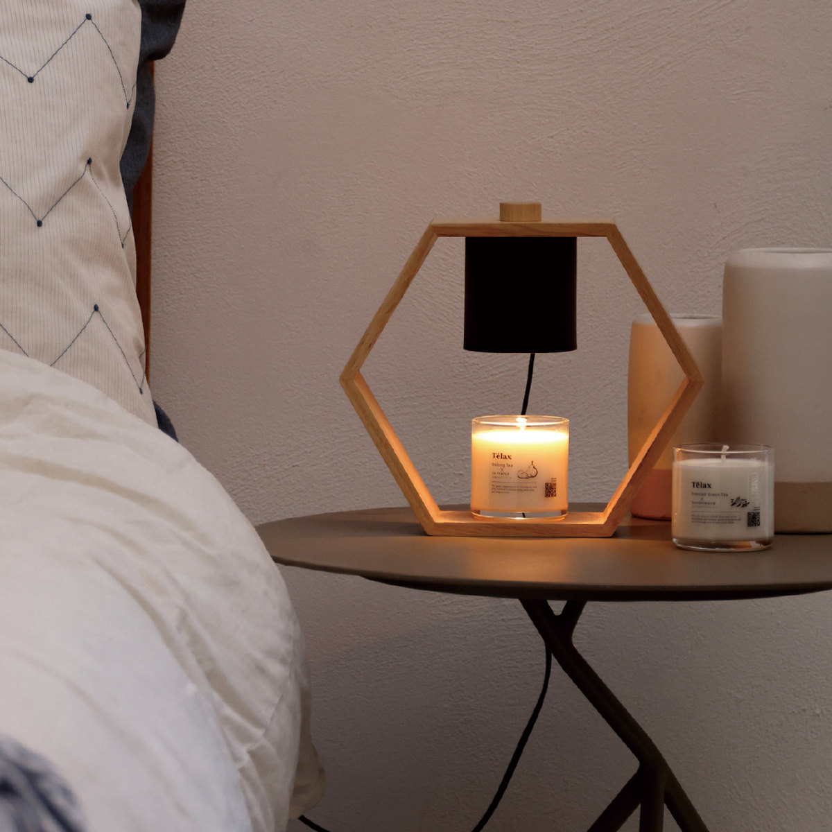 お茶の香りはリラックス効果が期待できるため、就寝前にもおすすめです。「キャンドルウォーマーランプ TLX-01」を使えば、火を灯さないのでより安全です。スイッチを入れるだけでアロマキャンドルを楽しめます。(※別売りです)