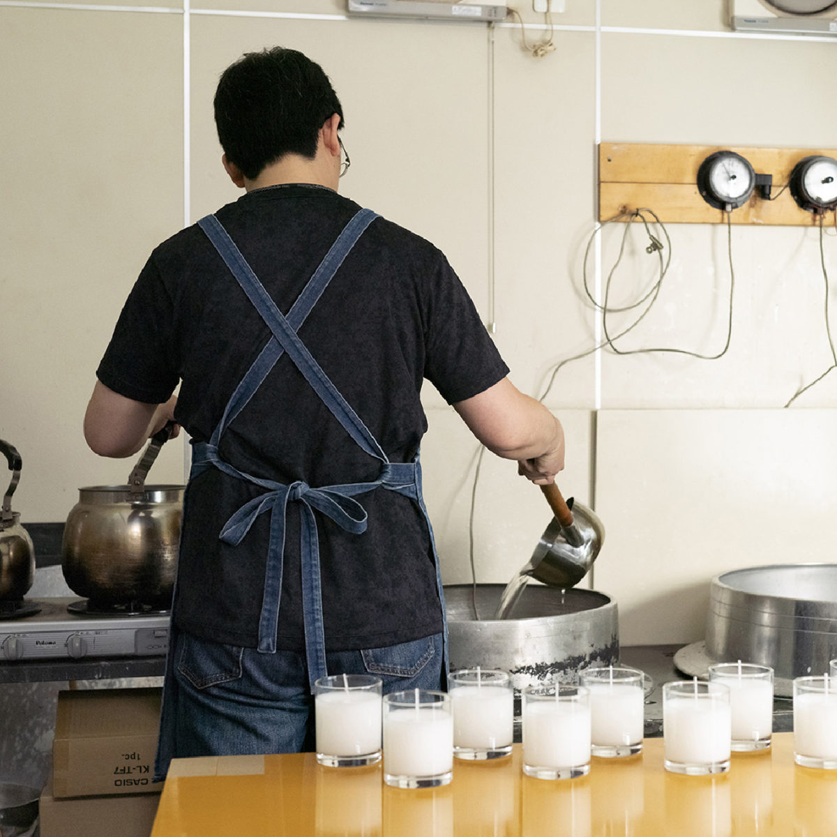 キャンドルの成分は天然の植物素材「ソイワックス」を100%使用しています。さらにキャンドルと相性の良い香料を使用することで、香りをより引き立たせています。東京の工房ですべて手作りで充填し、仕上げを行なっています。