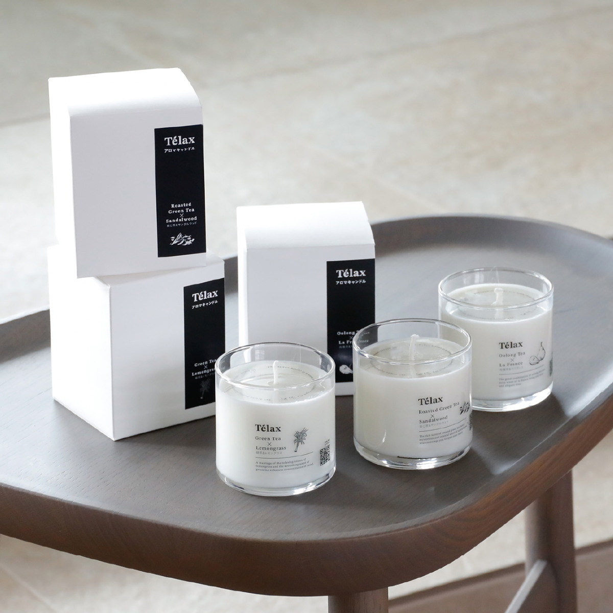 「烏龍茶×ラフランス」「焙じ茶×サンダルウッド」「緑茶×レモングラス」の3種類ございます。日本人に馴染みのある「烏龍茶」「焙じ茶」「緑茶」に、フルーツやハーブの香料を掛け合わせて少し爽やかな印象に。どこか懐かしさを感じるやさしい香りです。