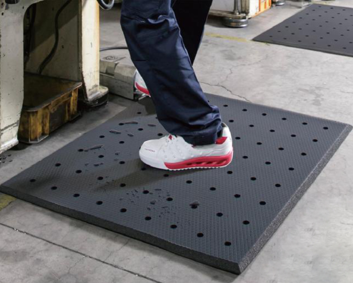 マット 耐油クッションマットFW 75×90cm 穴あきタイプ ( 法人限定 業務用 滑り止めマット 厚手 クッション 耐油 耐水 疲労軽減 RoHS指令対応 ブラック ゴム製 クッションマット ラバーマット 床 立ち作業 衝撃緩衝 工場 )