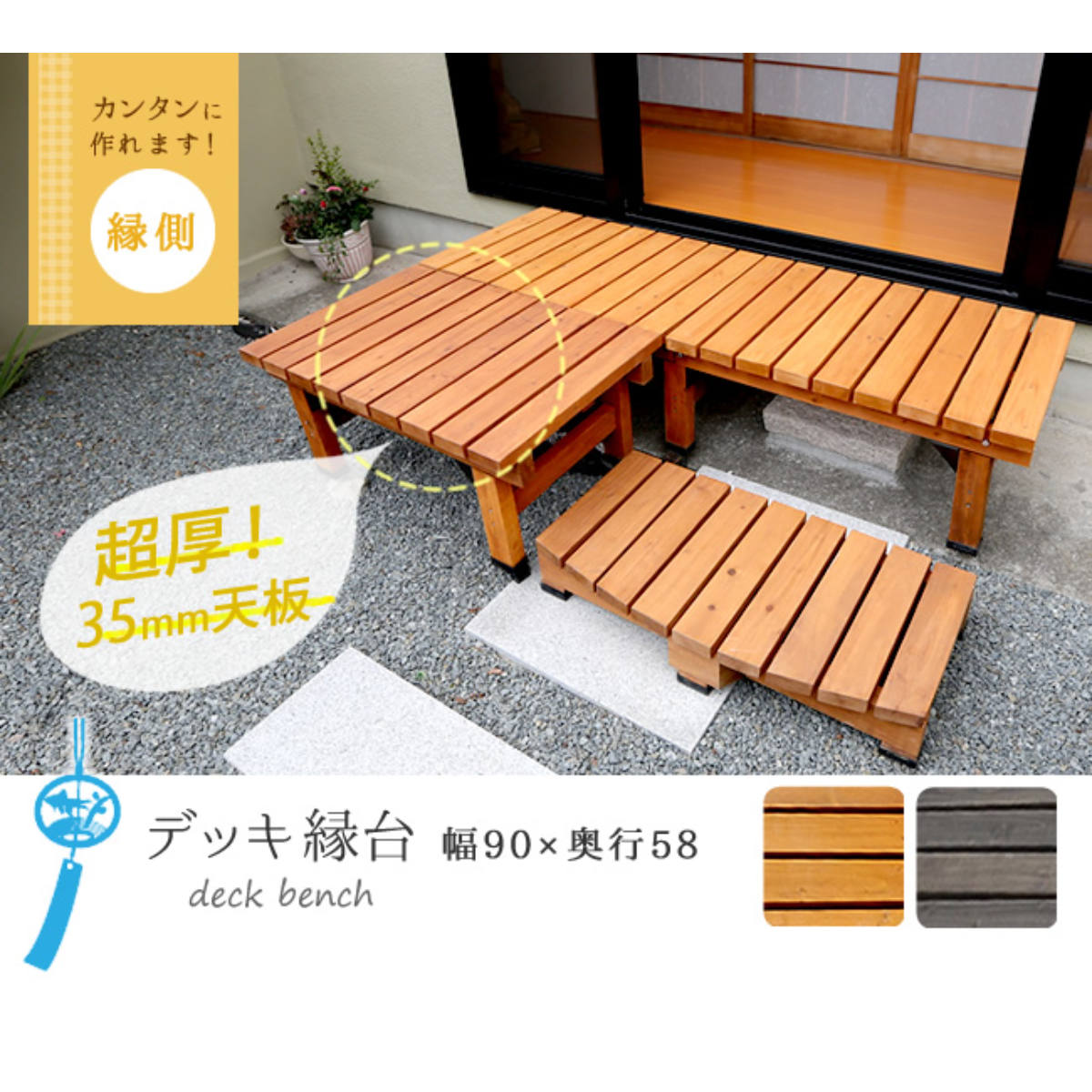 縁台 デッキ縁台 58×90cm ( ガーデンデッキ ベンチ 木製 屋外 ウッドデッキ ウッドベンチ 庭 バルコニー 天然木 杉 庭先 ぬれ縁 ガーデンベンチ 掃き出し窓 連結 ウッド デッキ おしゃれ ) 【ダークブラウン】