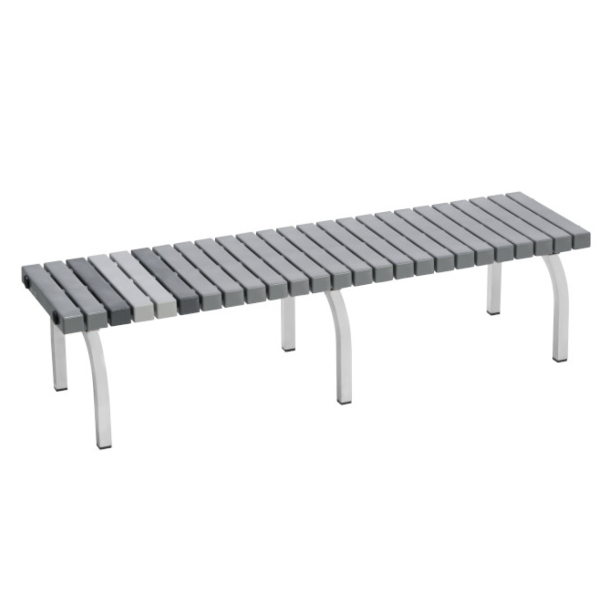 シンプルで洗練された印象のベンチです。淡いグレーの配色がワンランク上の上質な空間づくりに役立ちます。スタイリッシュでどこにでも調和するデザインで、屋内外を問わず使用できます。