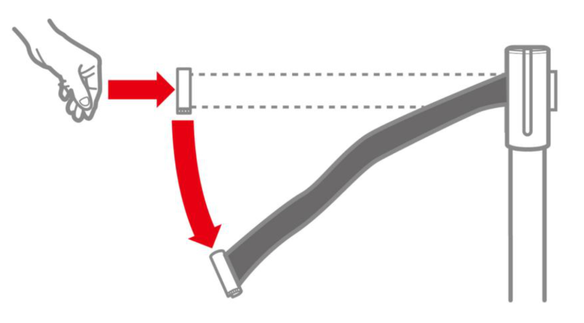 ●ベルトが手から離れた場合でもブレーキが働き、ゆっくり巻き取る安心の機構です。
