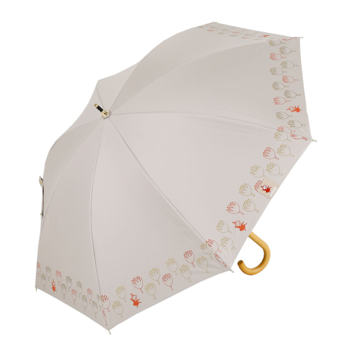 繊細なタッチで描かれたムーミンたちのアートと、やさしい色合いが魅力の晴雨兼用傘です。キャラクターが目立ちすぎず落ち着いたデザインなので、大人の方でもコーディネートに取り入れやすく、通勤・通学にピッタリ。ムーミン好きの方へのプレゼントにもおすすめです。