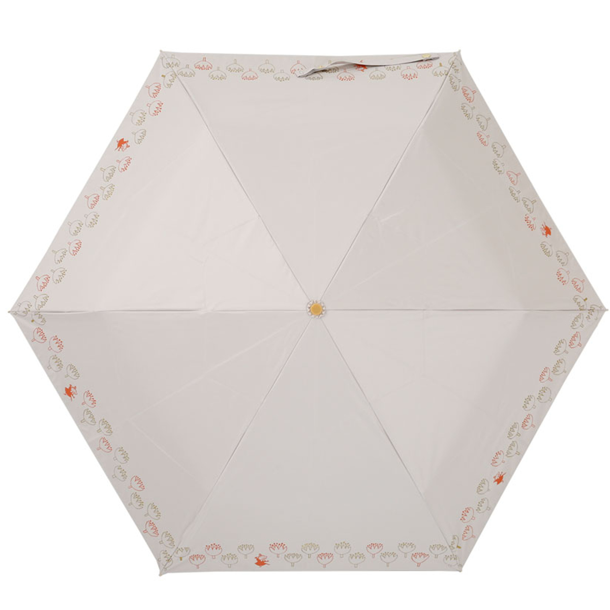 繊細なタッチで描かれたムーミンたちのアートと、やさしい色合いが魅力の晴雨兼用折りたたみ傘です。キャラクターが目立ちすぎず落ち着いたデザインなので、大人の方でもコーディネートに取り入れやすく、通勤・通学にピッタリ。ムーミン好きの方へのプレゼントにもおすすめです。