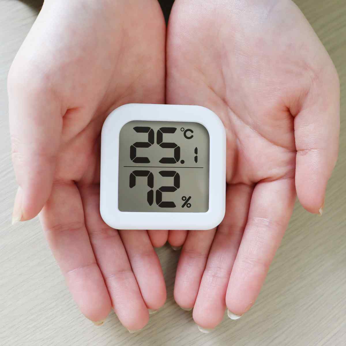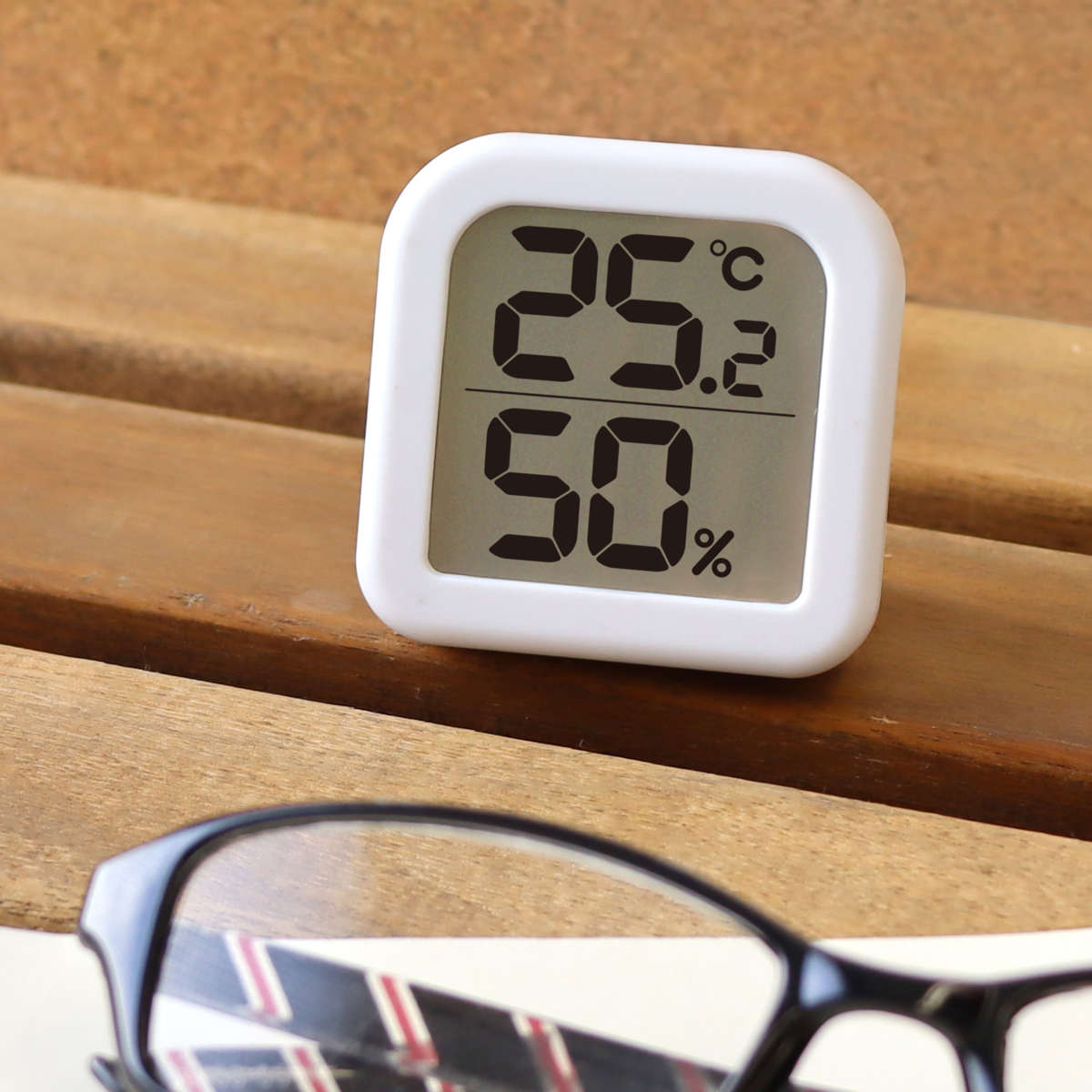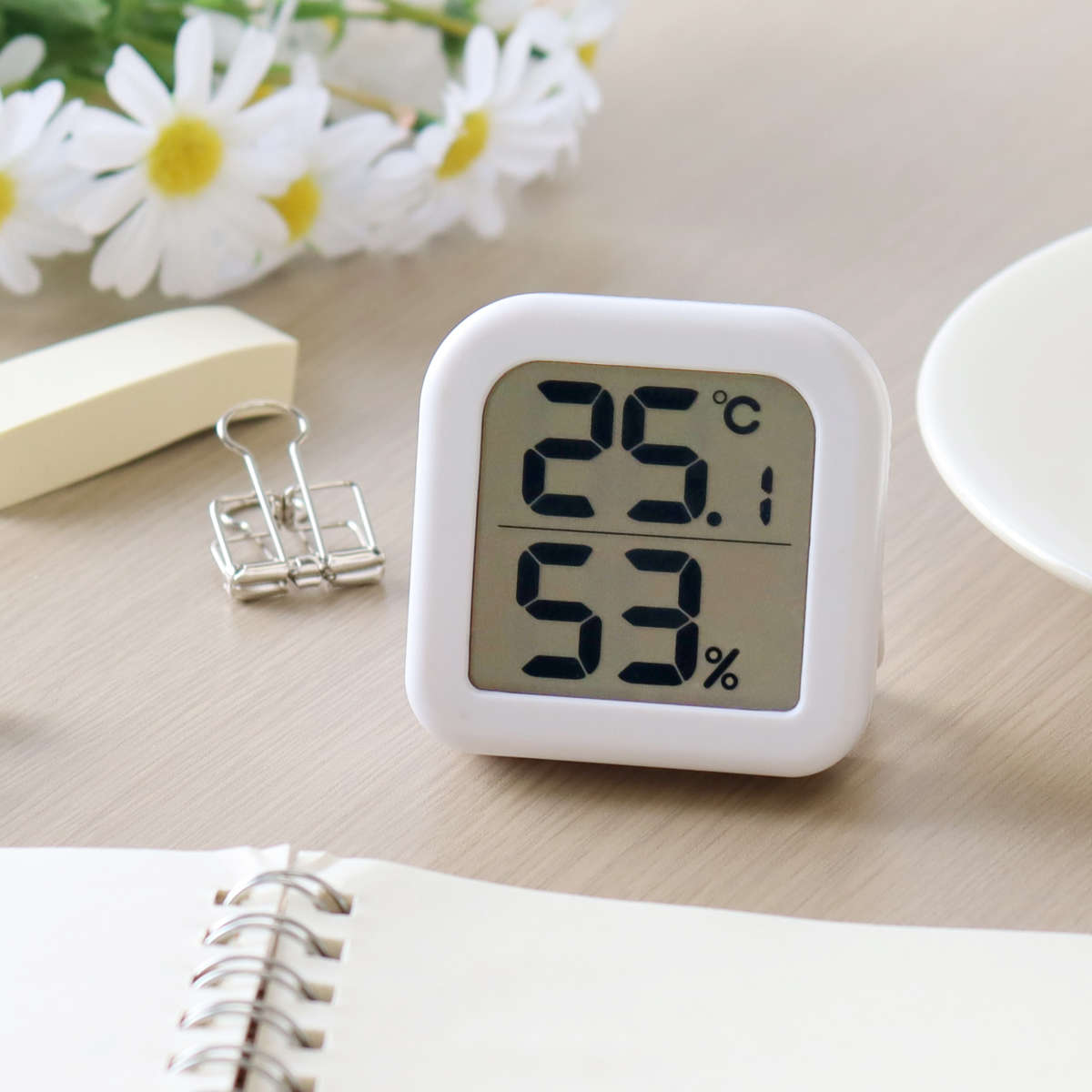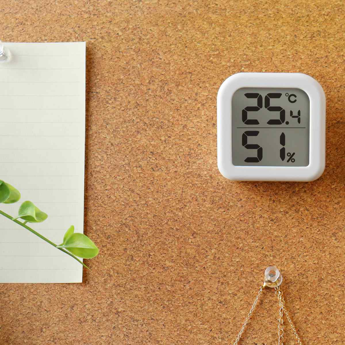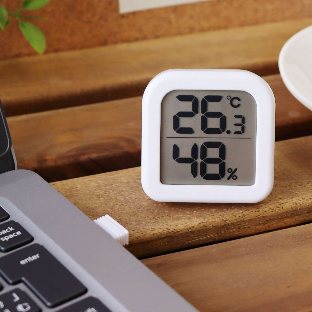 熱中症の危険度の目安や冬場の乾燥対策に、一部屋に一台は備えておきたい温湿度計です。ベッドサイドやデスクなど、手元にも置きやすいサイズ感が魅力です。
