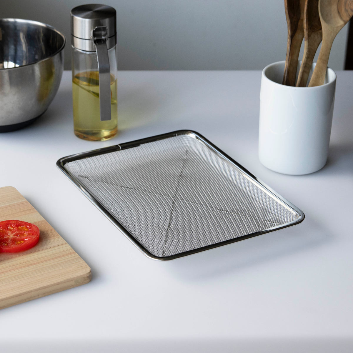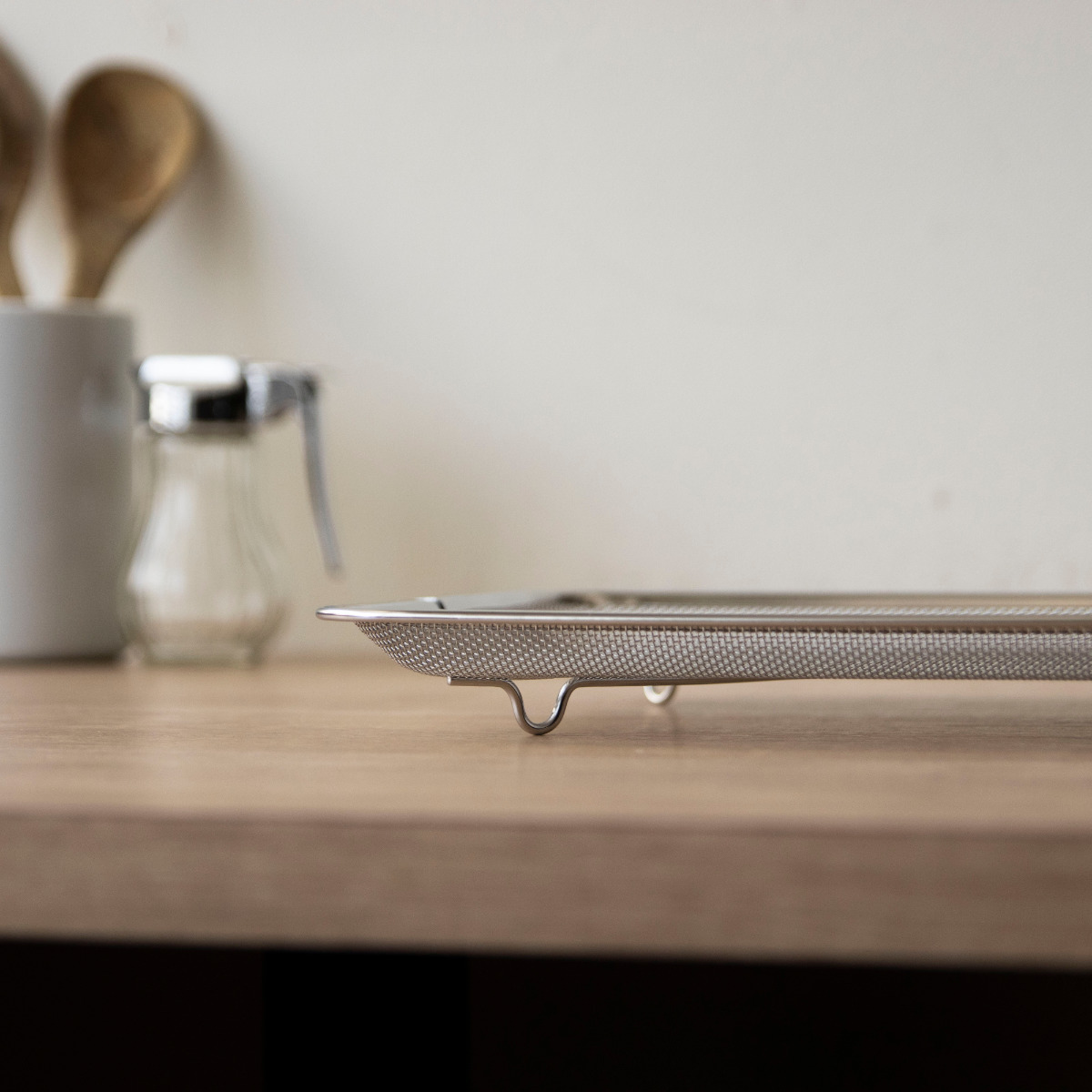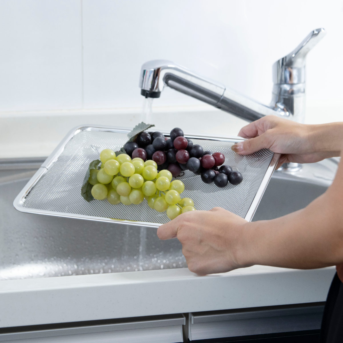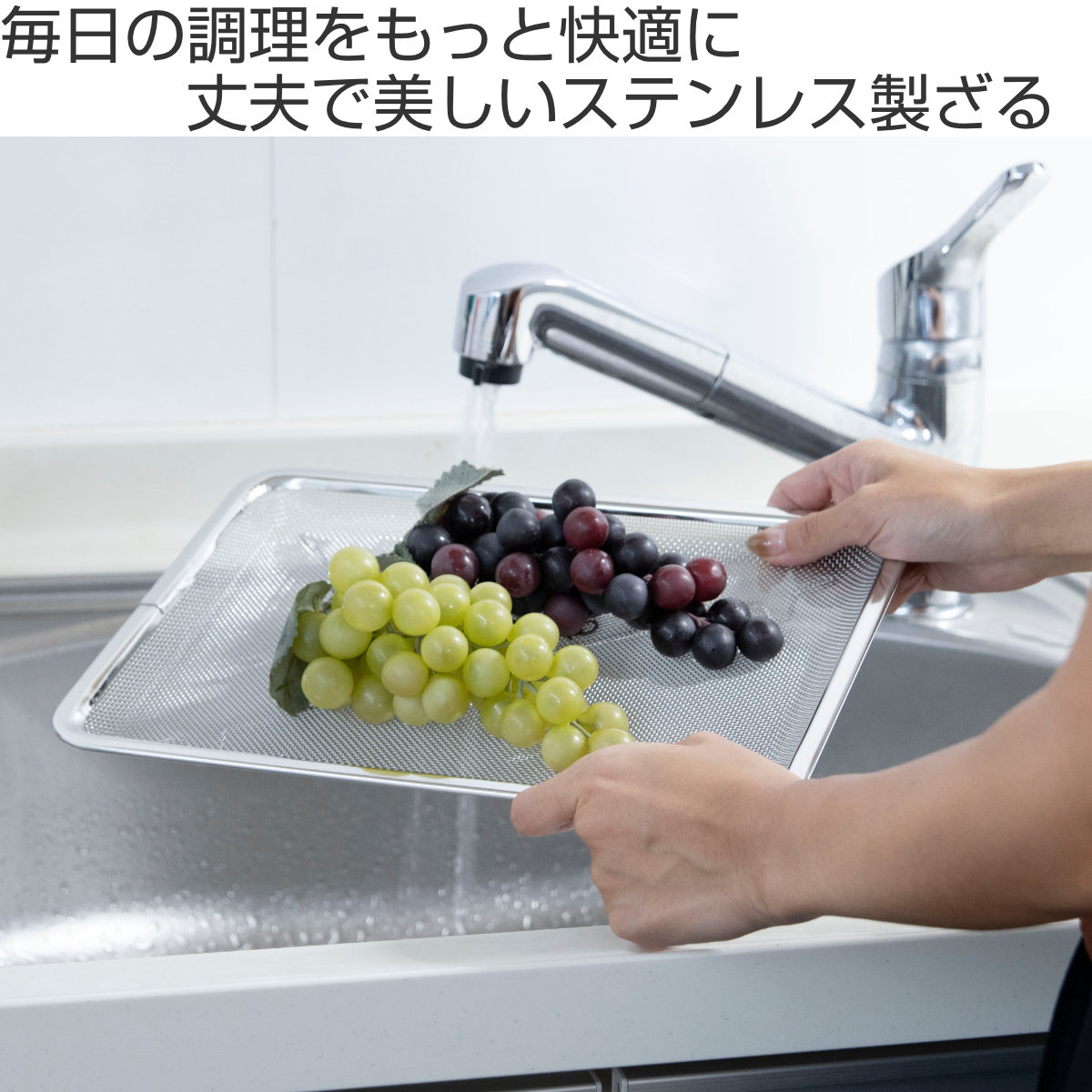 細かな網目がしっかり水を切りつつ、食材が落ちにくい設計になっています。