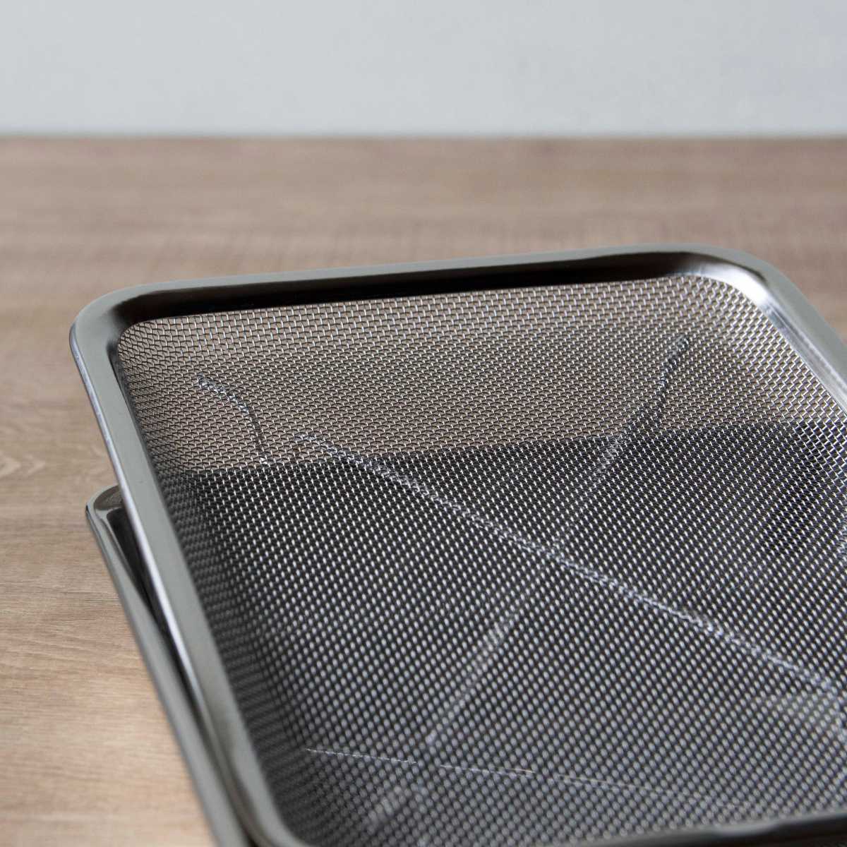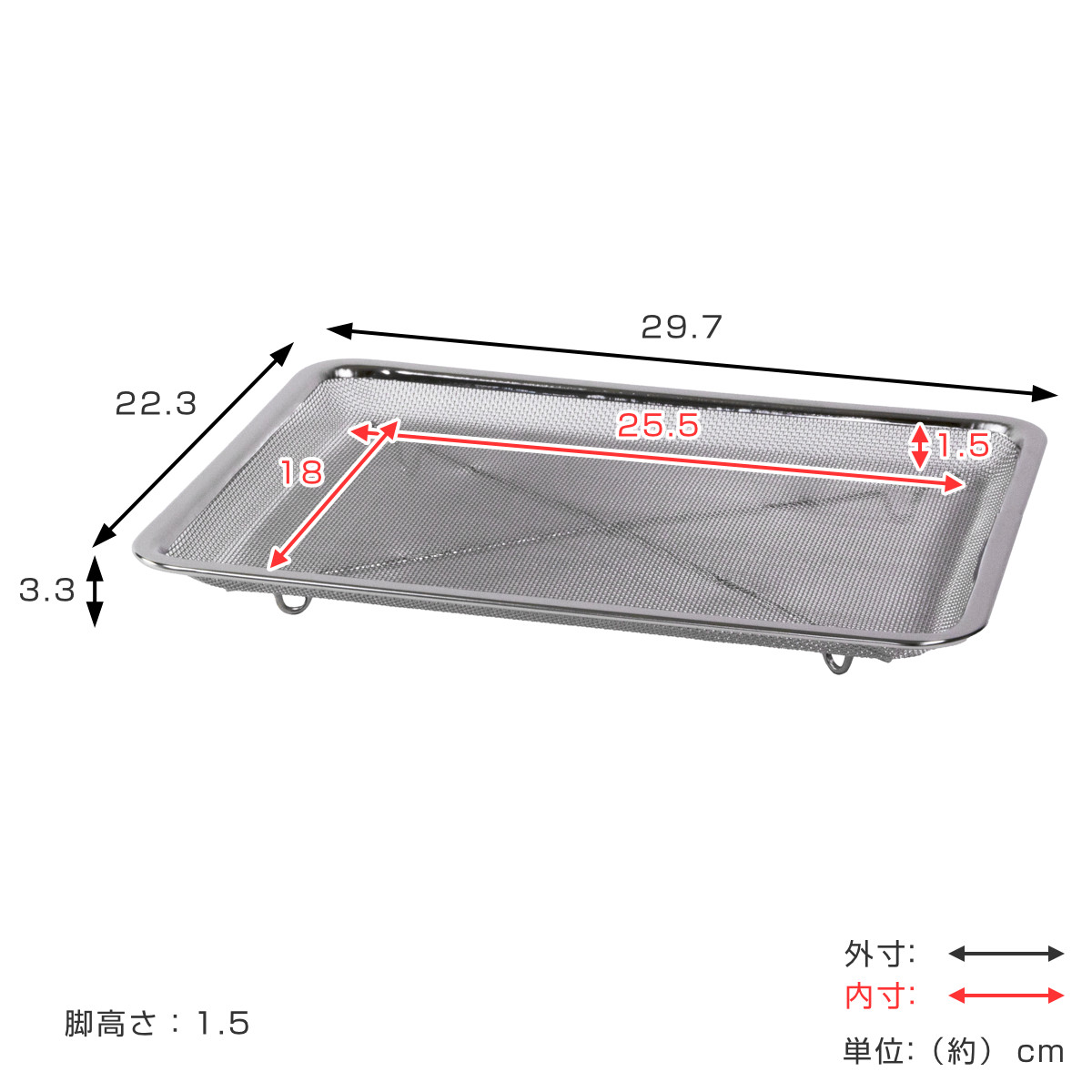 関連キーワード:天ぷら網 フライ網 油切り網 トレイ キッチン用品 キッチン雑貨 キッチンツール 調理小道具 調理用品 調理小物 調理ざる 調理用ざる 脚付き 保存 容器 台所 コランダー 四角 レクタングル 下準備 盛り付け スタッキング シルバー シンプル おすすめ オススメ 便利 役立つ サビにくい 錆びにくい 高級感 幅29.7 奥行22.3 高さ3.3 30 23 3