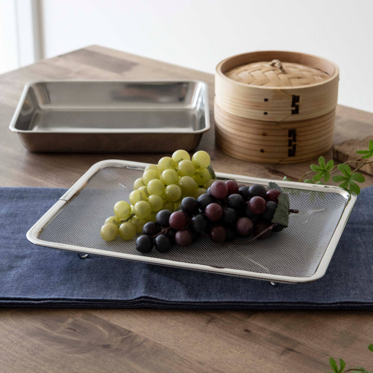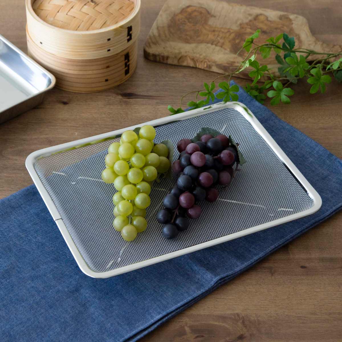 角トレーザルよりも深型の角ザルや角バットと組み合わせて使うこともできます。同じシリーズで揃えていただくことで、キッチンに統一感が生まれます。