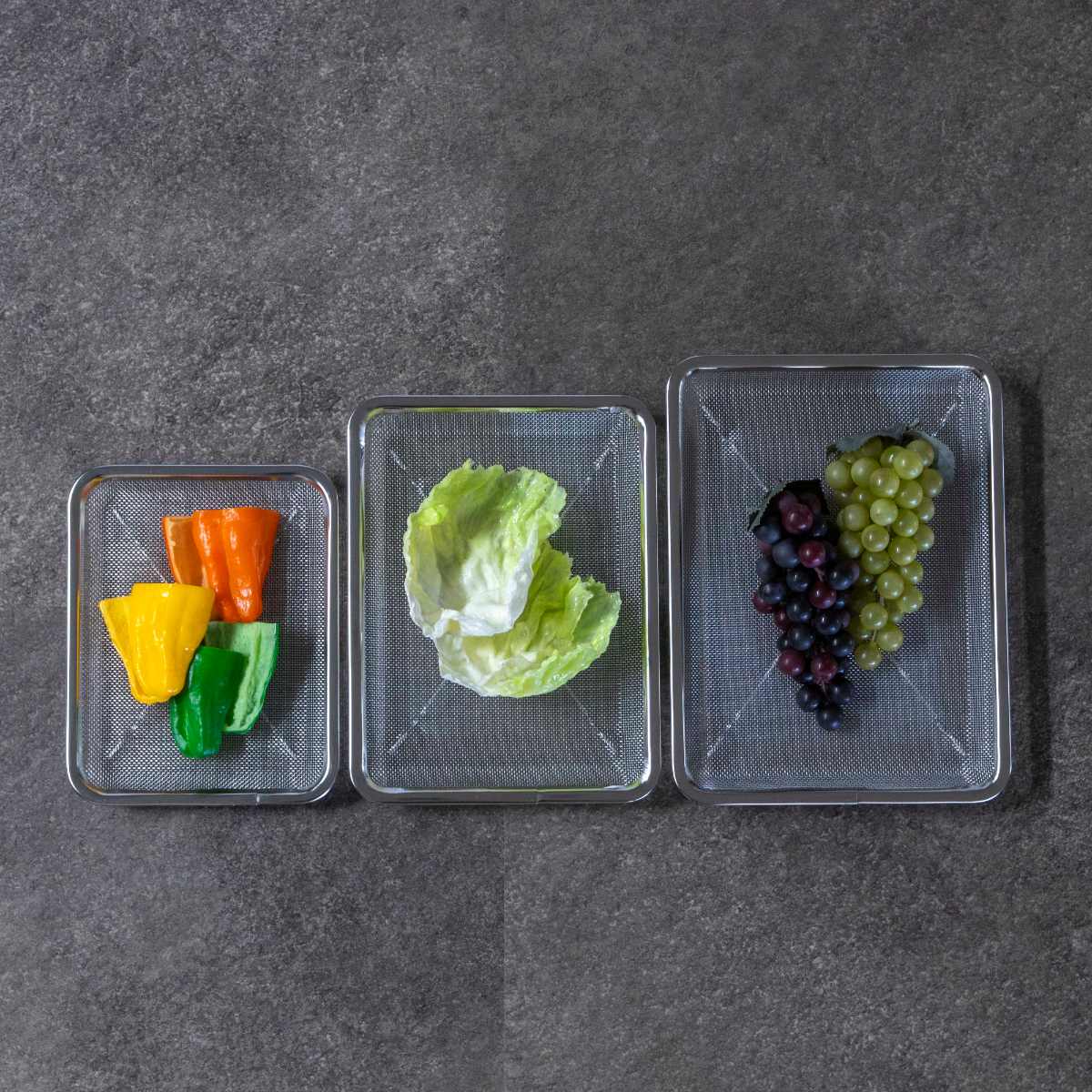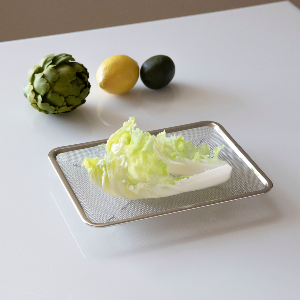平らな形状なので、食材を広げたり並べることができ、効率よく水切りできます。
