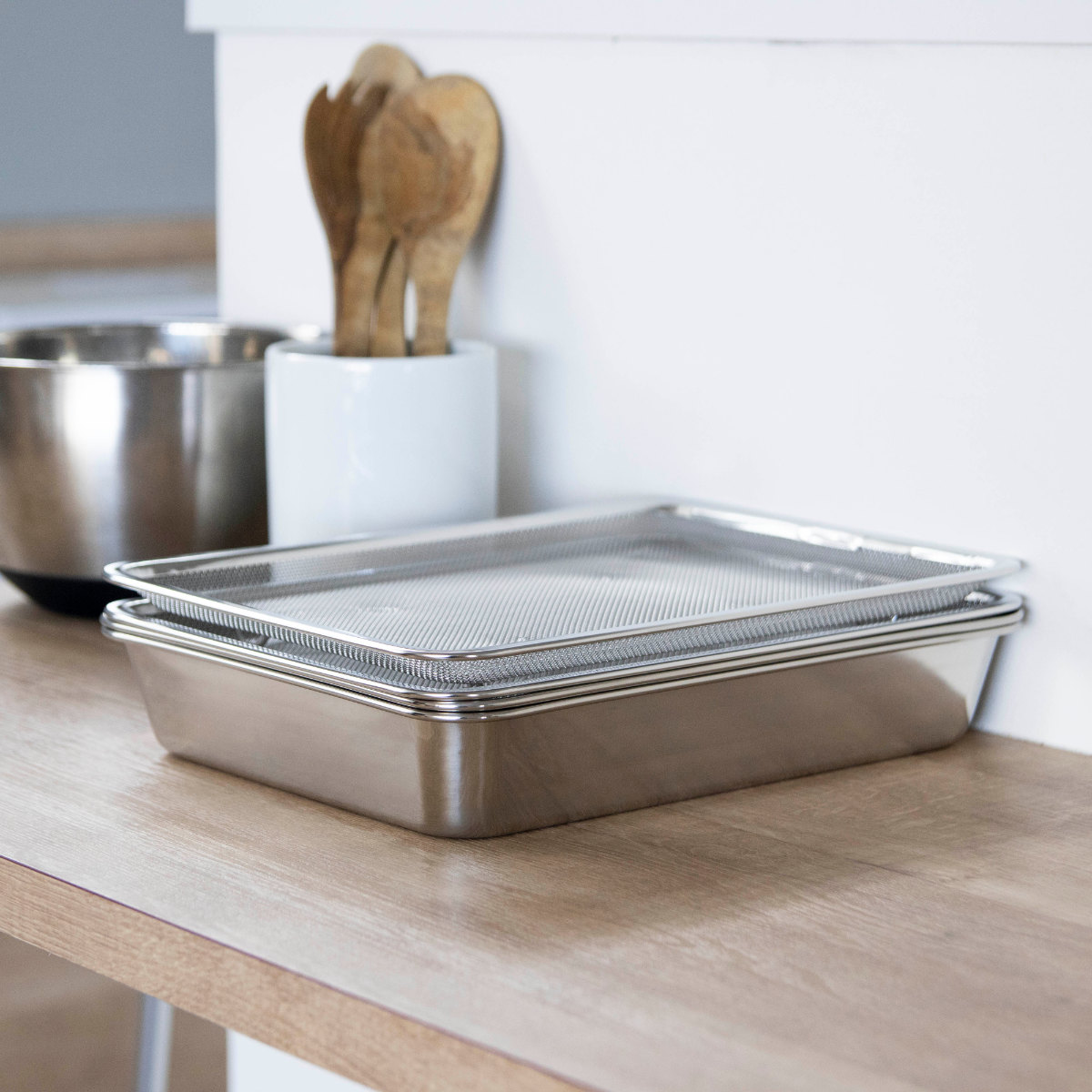 工房アイザワ ザル 角トレーザル 足付 15枚取 ( キッチン ざる 角ざる 足付き 薄型 浅型 料理 調理 水切り 18-8ステンレス 湯切り 下ごしらえ 油切り 網 トレー ステンレスザル 角型ザル 長方形 使いやすい 丈夫 アイザワ )
