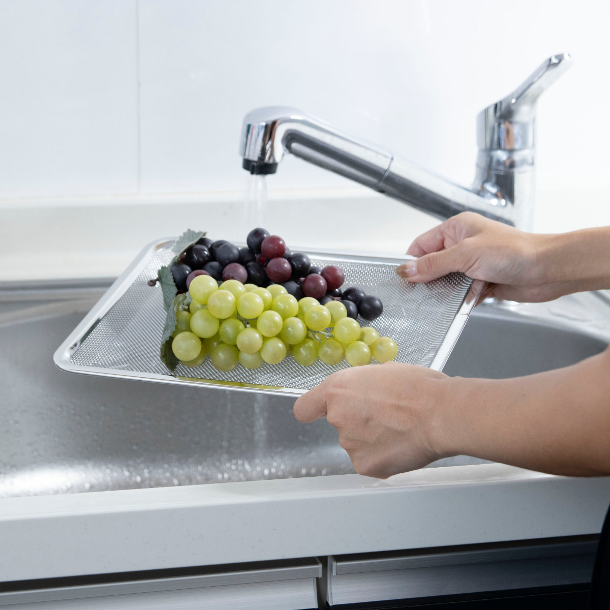 細かな網目がしっかり水を切りつつ、食材が落ちにくい設計になっています。