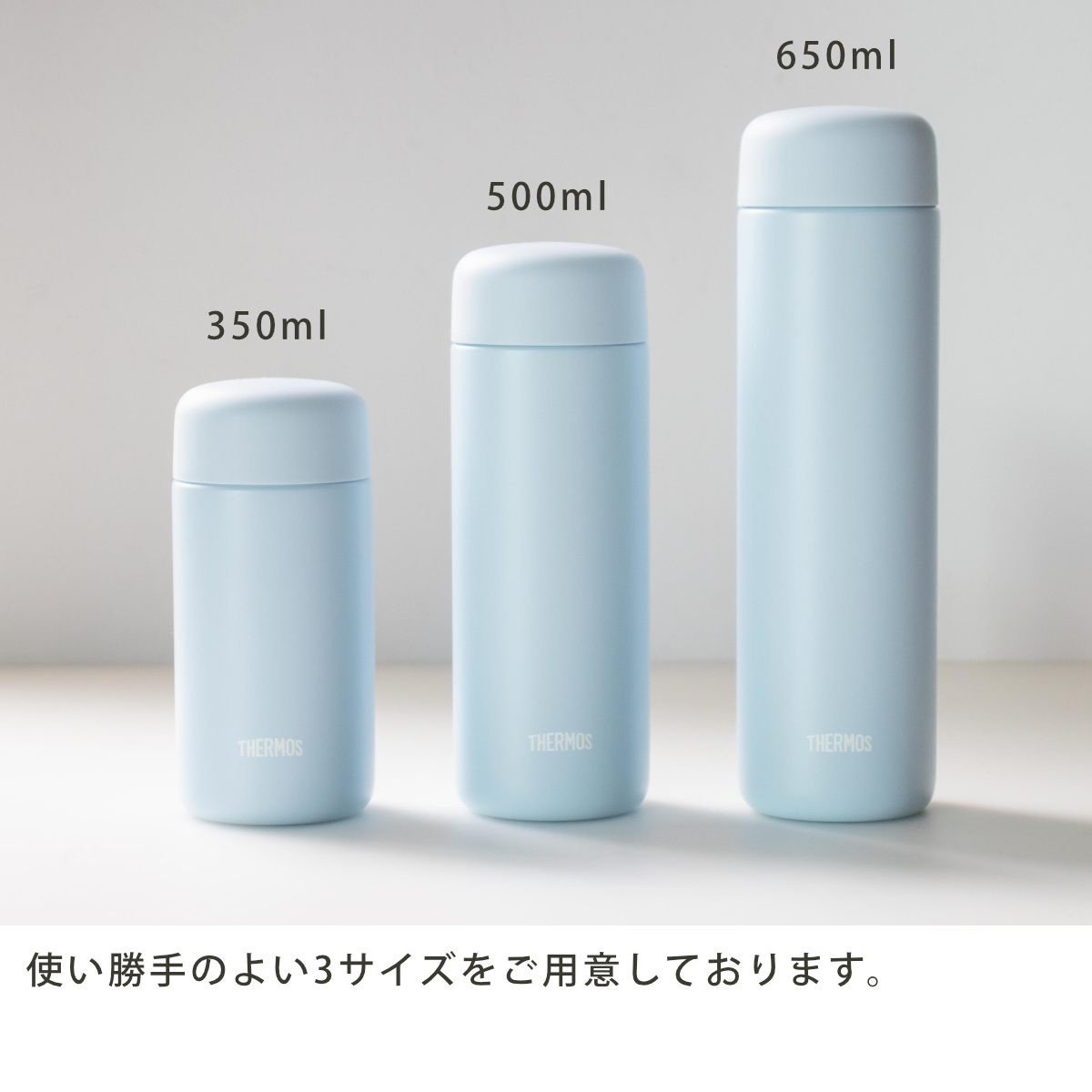 ![]() ちょっとした外出に便利な350ml 【▲このページの商品】 | ![]() 普段使いにちょうど良い500ml | ![]() 少し大きめサイズの650ml |