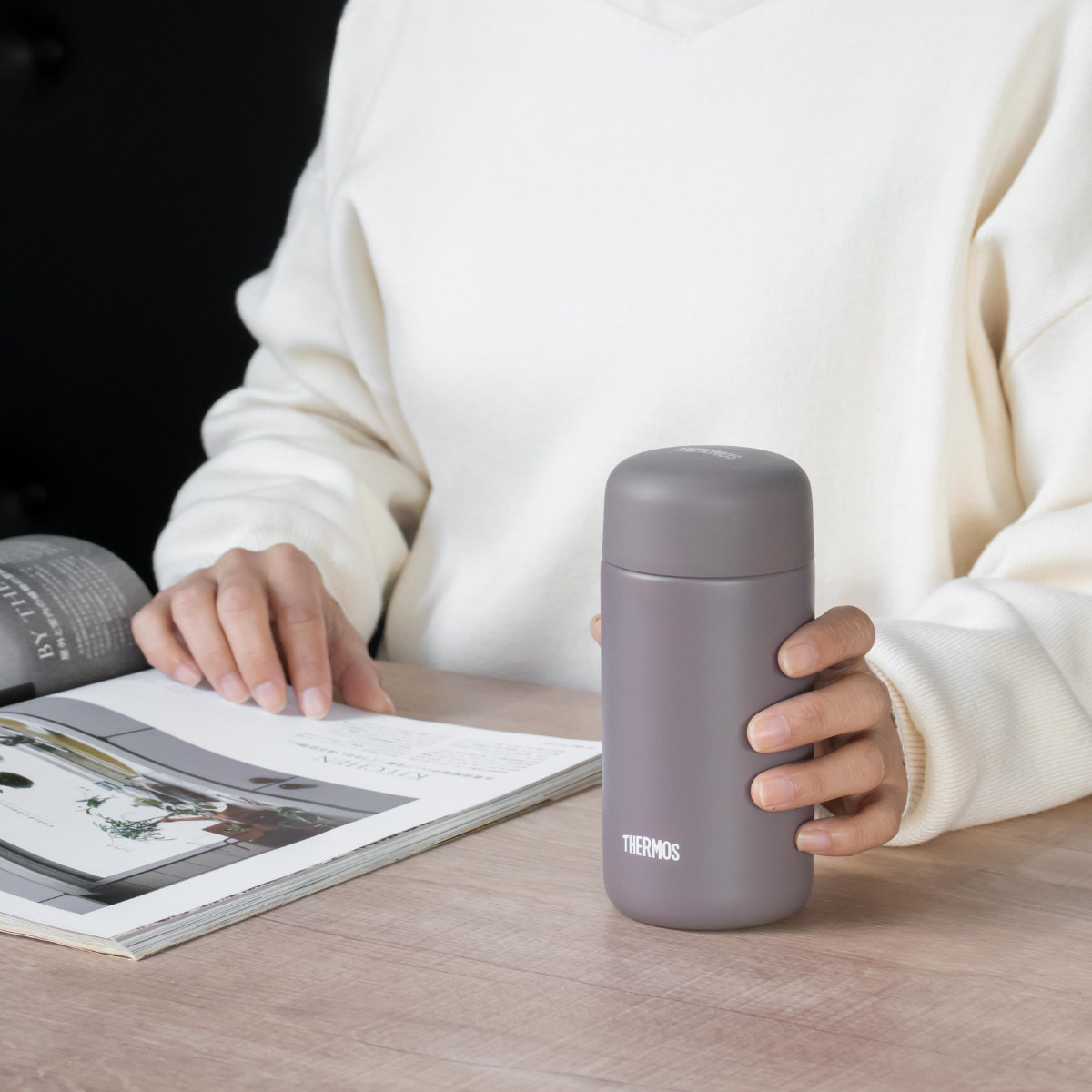 サーモス 水筒 350ml 真空断熱ケータイマグ セラミック加工 JPB-350 ( THERMOS 直飲み 保温 保冷 食洗機対応 スクリュー マグボトル スポーツドリンク対応 食洗機OK ステンレスボトル 魔法瓶 スリム 軽量 マグ ボトル シンプル ) 【フォギーブラウン】