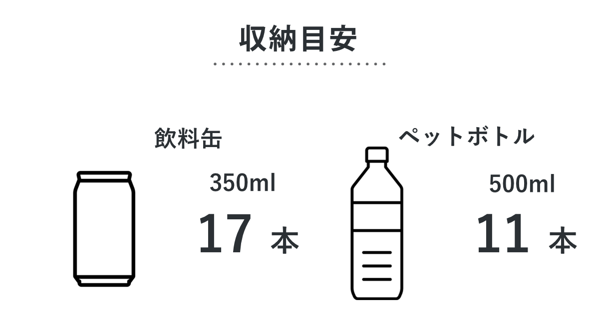 | 備考 | 収納目安:350ml缶×約17本、500mlペットボトル×約11本 |
