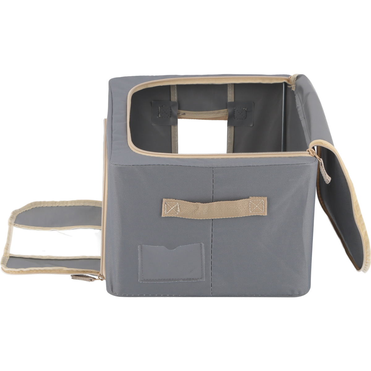 収納ボックス 22L 窓付き 積み重ね収納ボックス 布 幅39×奥行29×高さ20cm ( 前開き 衣類収納 スタッキング 収納ケース 衣類 洋服 収納 クローゼット収納 大容量 押入れ収納 衣装ケース おしゃれ 収納袋 持ち手付き ) 【グレー】