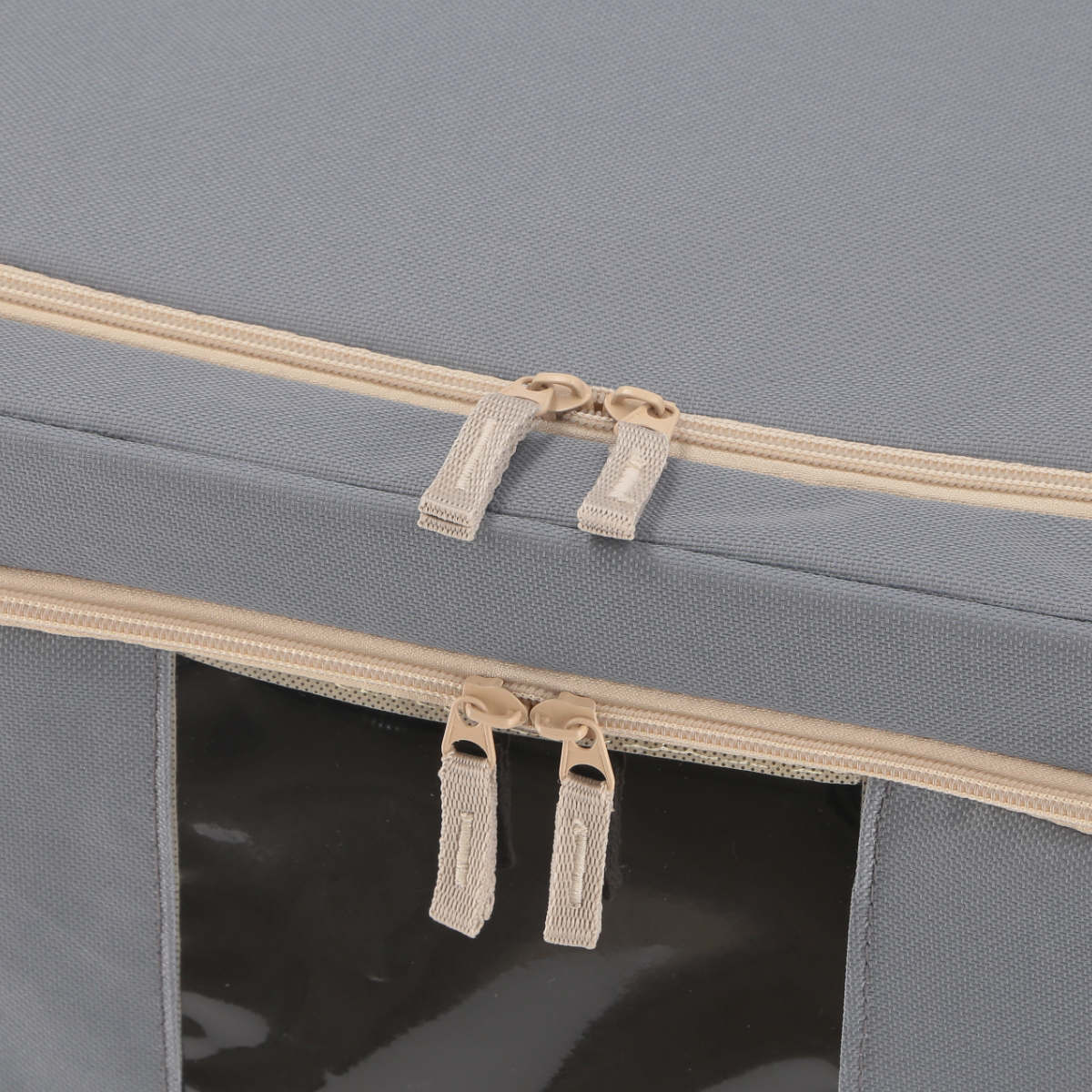 上面と前面にファスナーが付いていて、積み重ねたままでも出し入れが可能です。上のボックスを動かす必要がないため、日常使いに優れています。