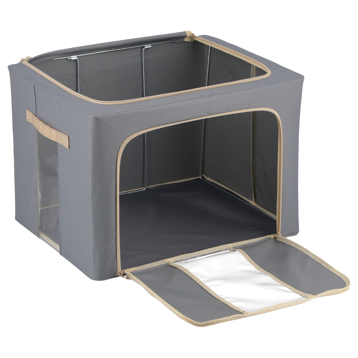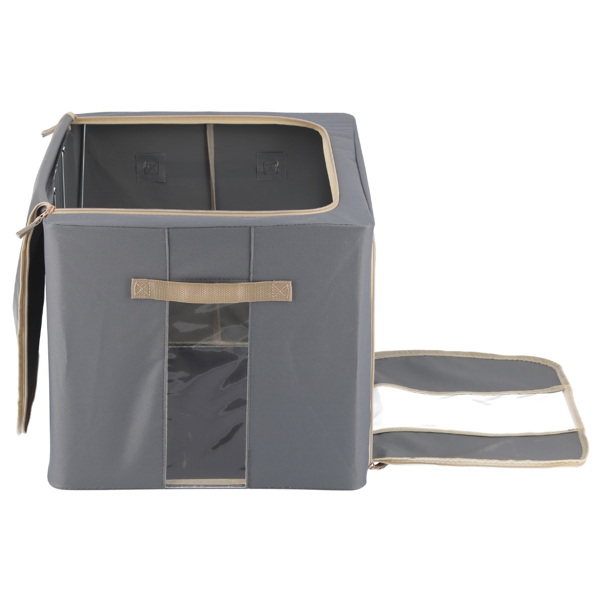 収納ボックス 72L 窓付き 積み重ね収納ボックス 布 幅50×奥行40×高さ36cm ( 前開き 衣類収納 スタッキング 収納ケース 衣類 洋服 収納 クローゼット収納 大容量 押入れ収納 衣装ケース おしゃれ 収納袋 持ち手付き ) 【ブラウン】
