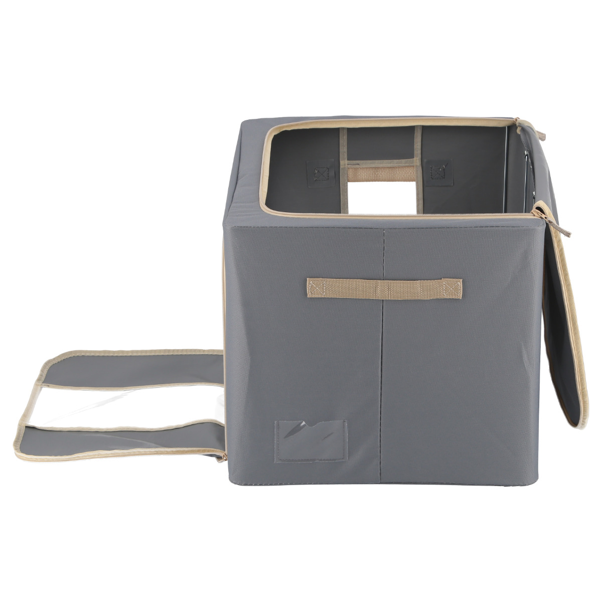 前面と側面に透明窓が付いているため、フタを開けなくてもどこに何を入れたかひと目で分かります。探し物の手間が減り、必要なものをすぐに取り出せます。