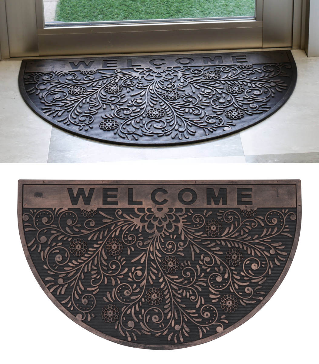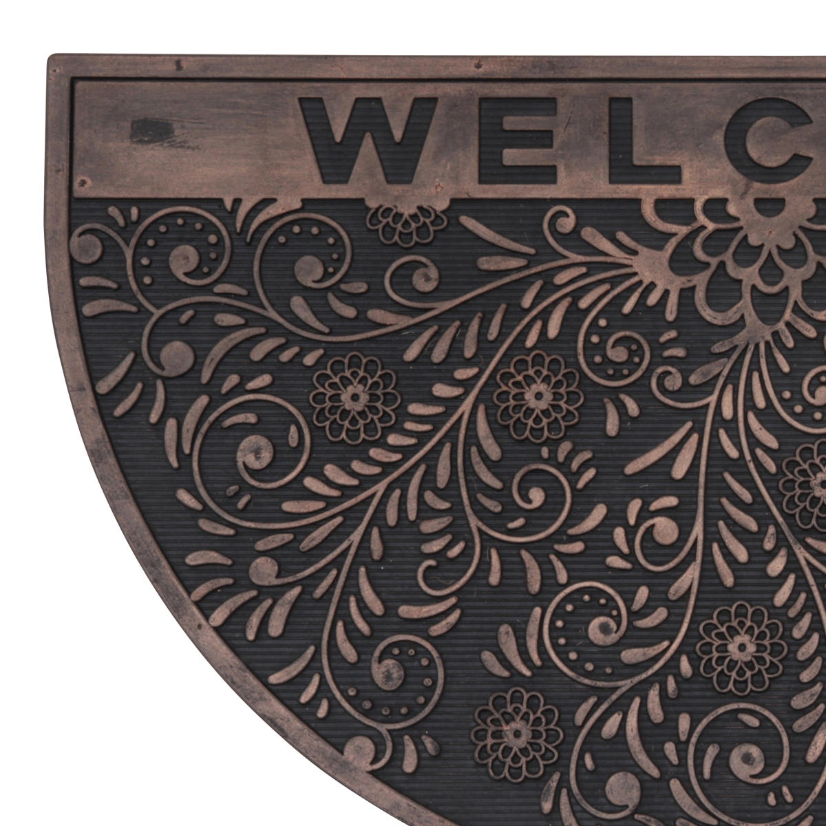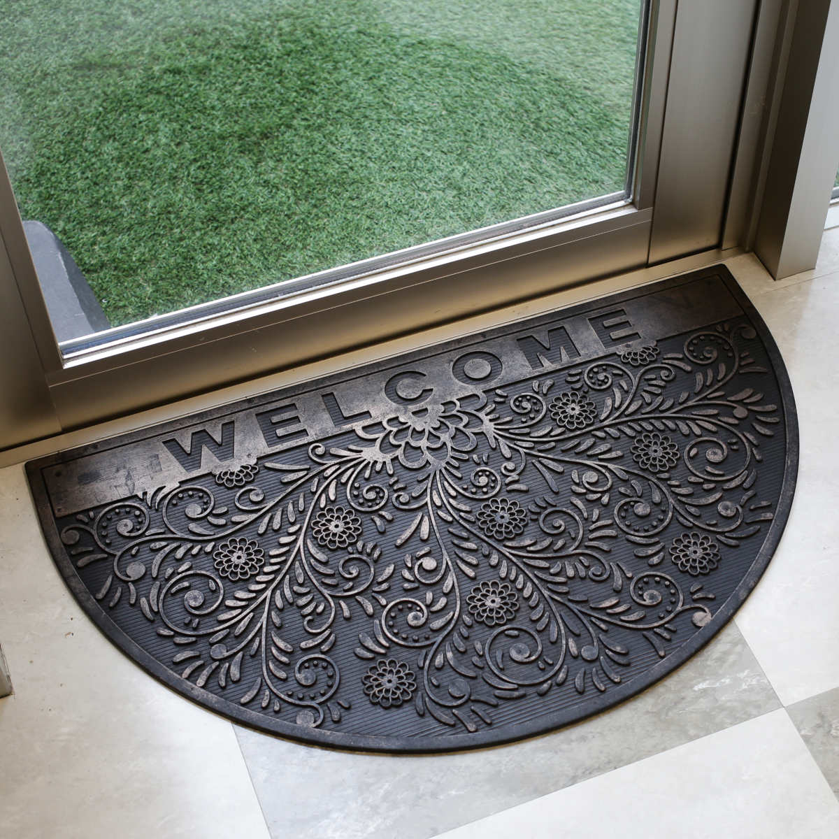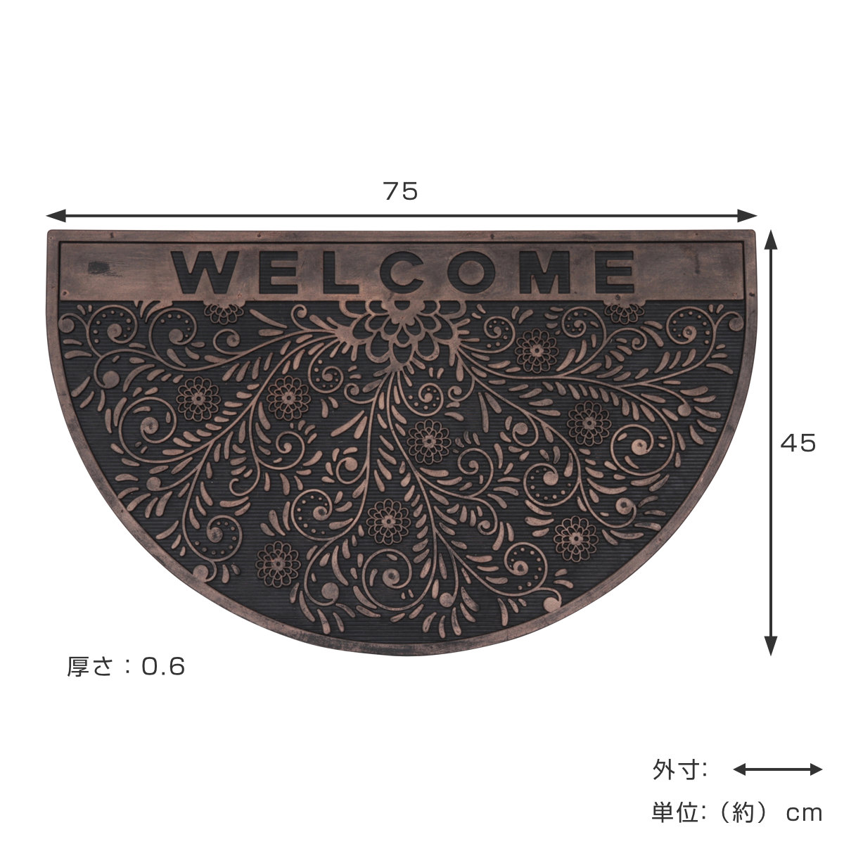 玄関マット 屋外 ラバーマット 半円 ウェルカム リーフ 45×75 ( 泥落とし 洗える 水洗い 弾力 マット 滑り止め 雨 ラバー ゴム 幅75cm おしゃれ カフェ ベランダ デッキ テラス 玄関 ゴム素材 外用 室内 薄手 )
