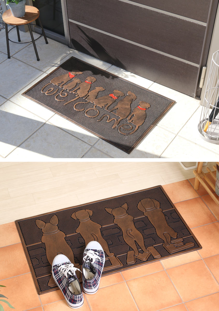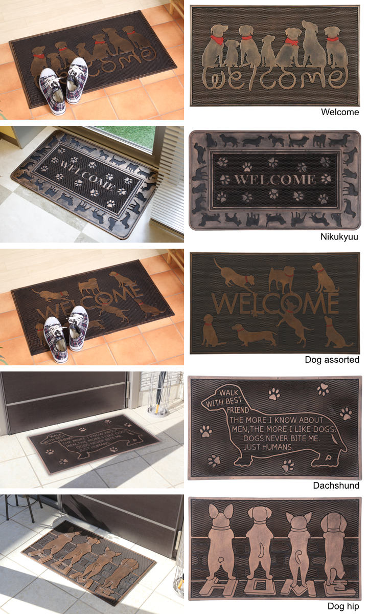 玄関マット 屋外 ラバーマット 犬 45×75 ( 泥落とし 洗える 水洗い 弾力 マット 滑り止め 雨 ラバー ゴム 幅75cm イヌ おしゃれ カフェ ベランダ デッキ テラス 玄関 ゴム素材 外用 室内 薄手 ペット ) 【ウェルカム】