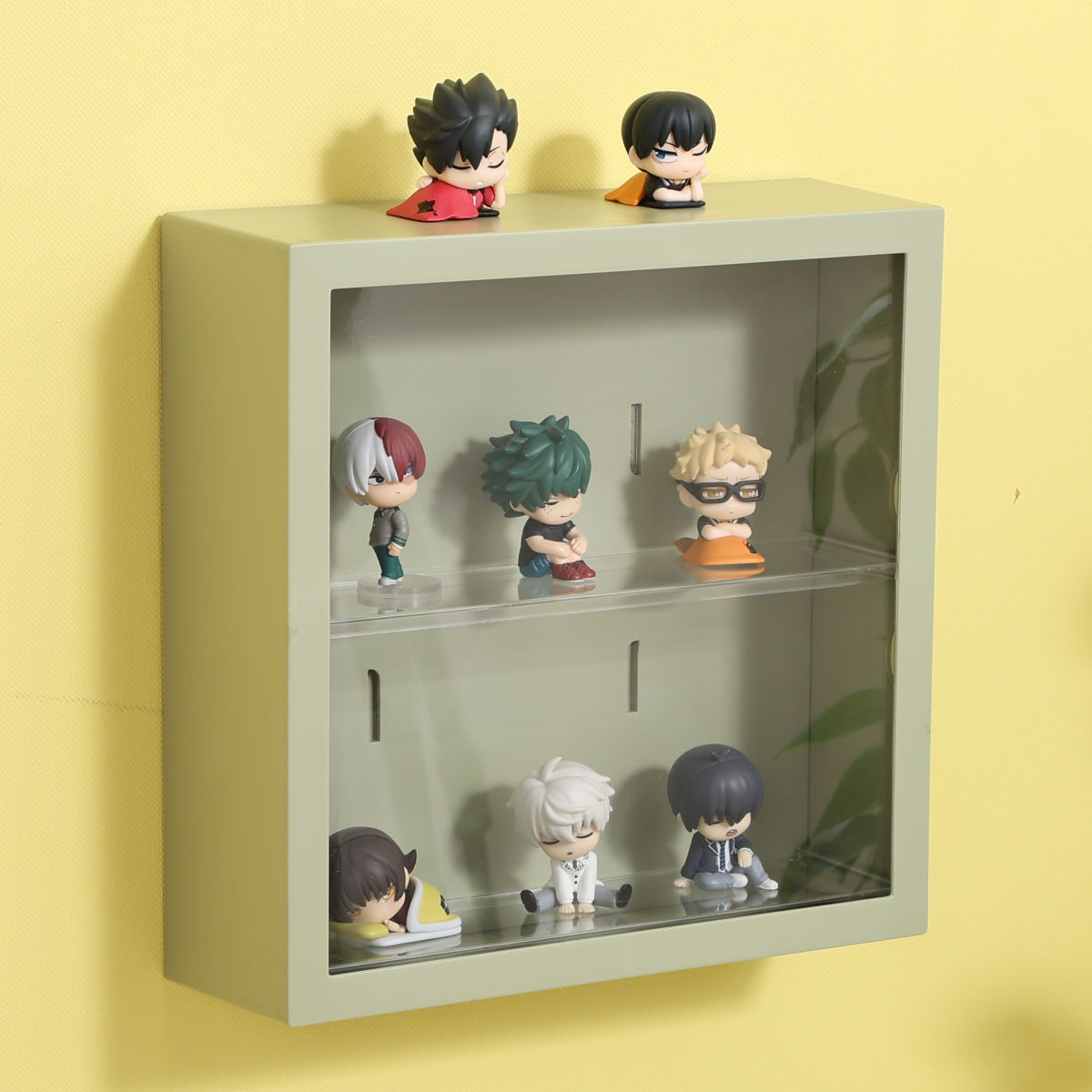 収納ケース コレクションケース 壁掛け kake 扉付き 推し活 ( フィギュアケース 棚 アクリル アクスタ収納 アクスタ フィギュア ケース 収納 ボックス コレクション 3段 透明 ヲタ活 アクスイ ぬいぐるみ 人形 アニメ ) 【グリーンティー】