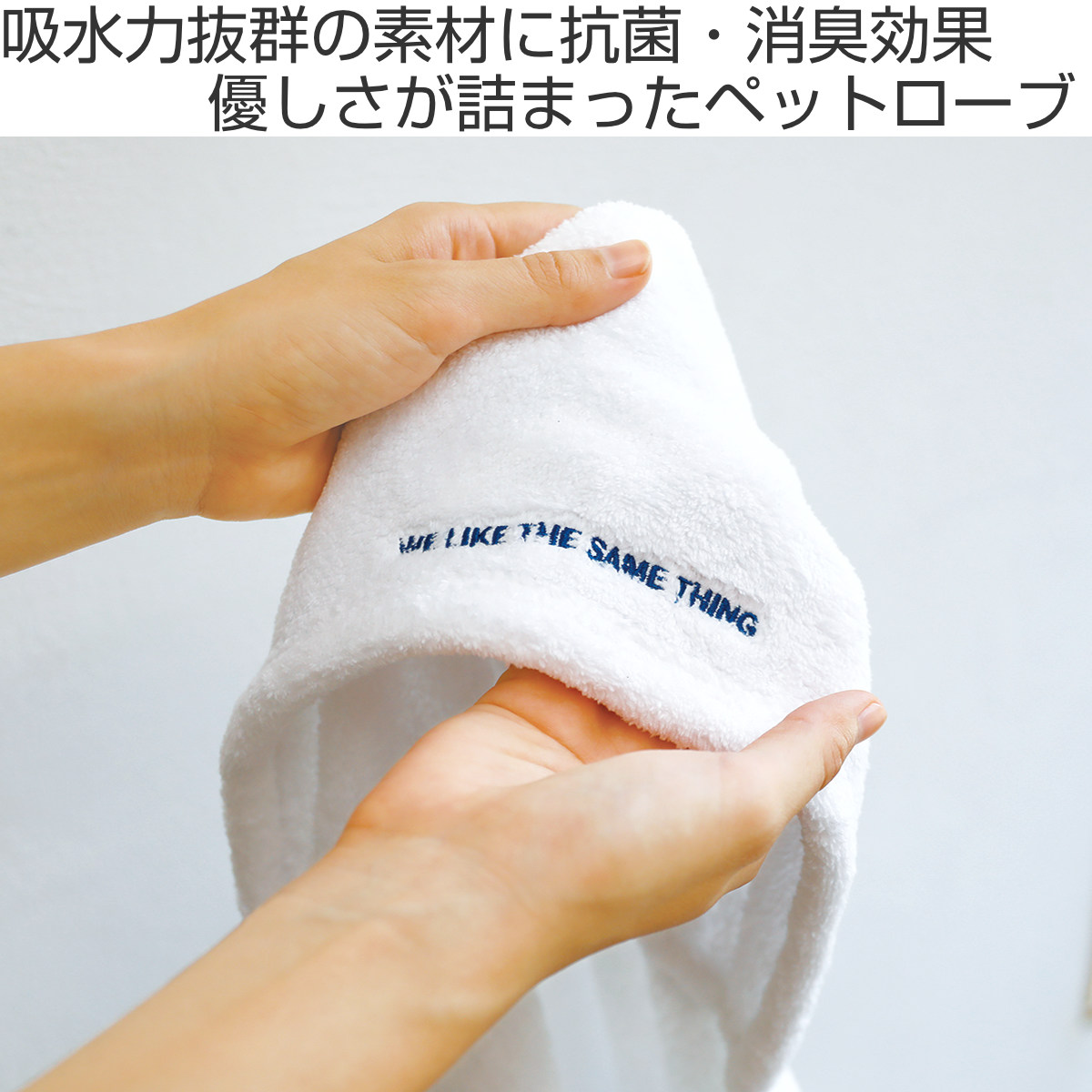 抗菌・消臭効果を備えた、ペットのための高機能タオルを使ったペット用ローブです。抗菌加工により雑菌の繁殖を抑え、消臭機能でペットの体臭や湿気によるニオイを軽減。使用後も清潔で快適な状態を保ちやすく、毎日のケアに安心して使用できます。