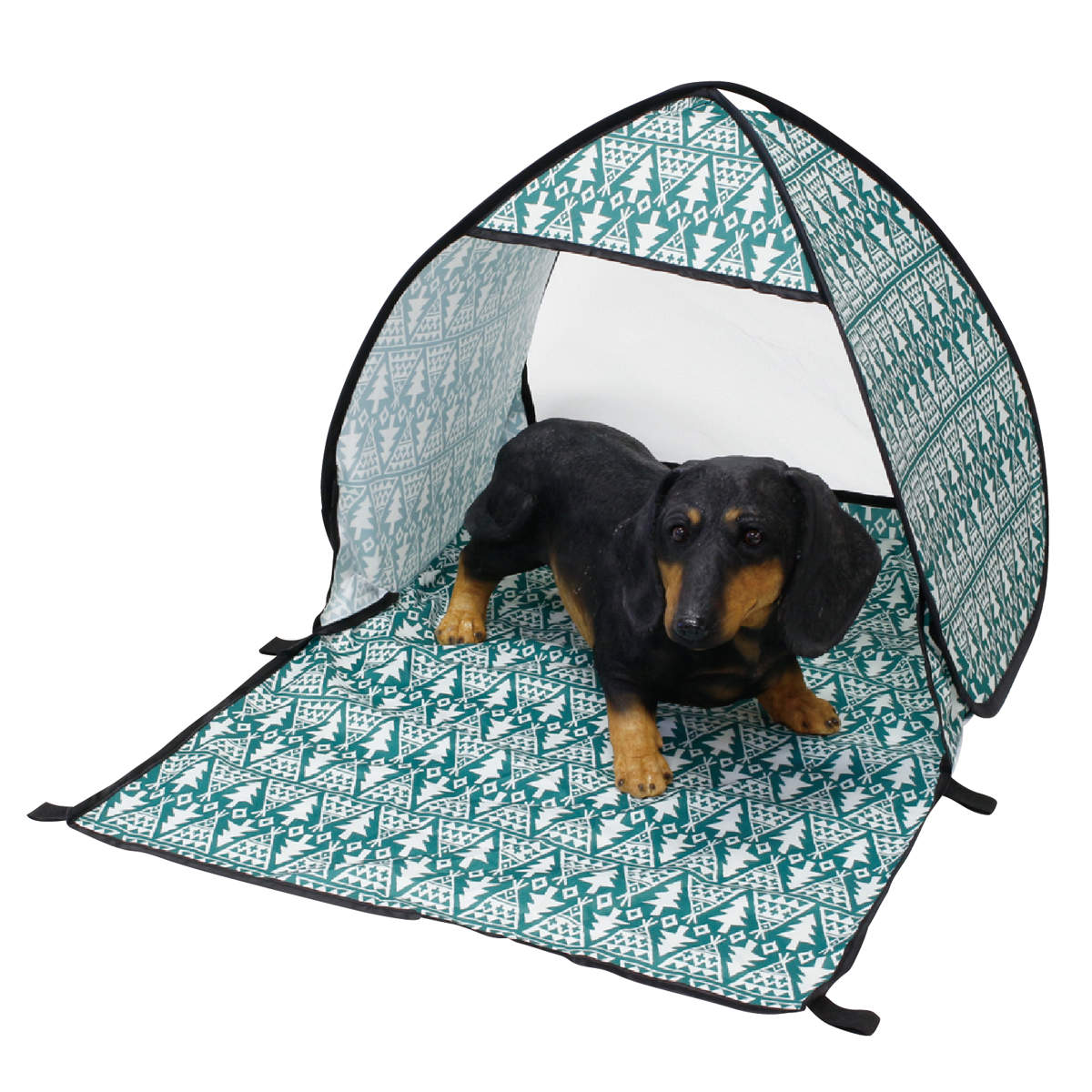 折りたたんでコンパクトに収納でき、サッと広げるだけで設置できます。インテリアにも自然にも馴染むナチュラルな印象の柄です。小型犬にぴったりなサイズ感で室内はもちろん、アウトドアでもワンちゃんの休息スペースとしてお使いいただけます。