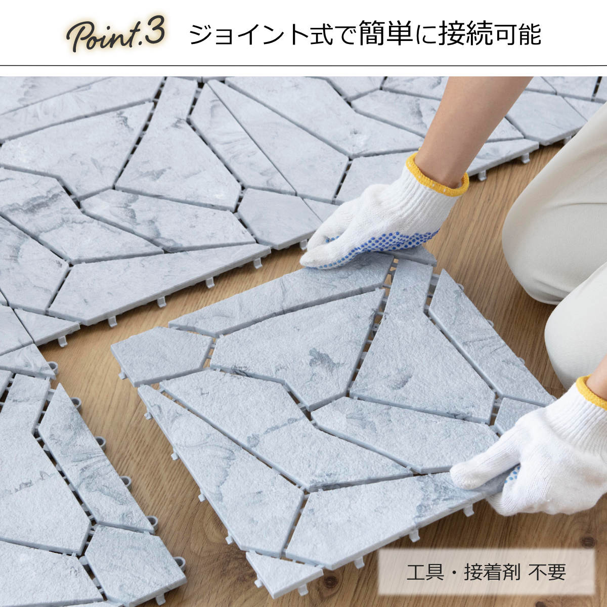 工具も接着剤も不要で、誰でも簡単に敷き詰められる構造です。