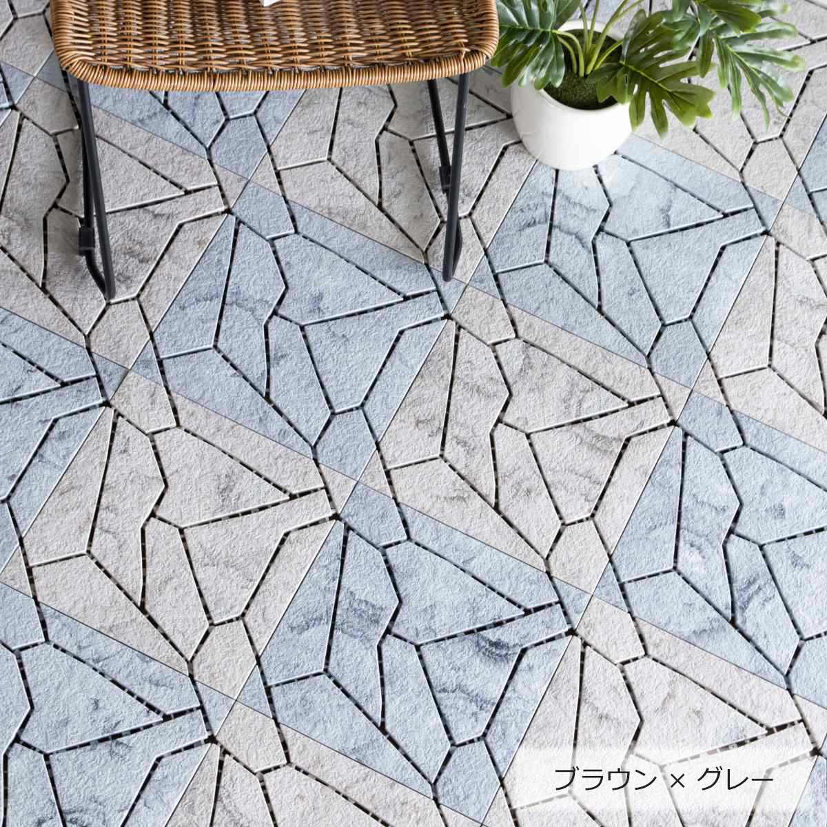 並べるだけで簡単に設置できる、ジョイント式のタイルマットです。お庭やベランダ、玄関などに敷けば、パッと明るく、おしゃれな雰囲気を演出できます。