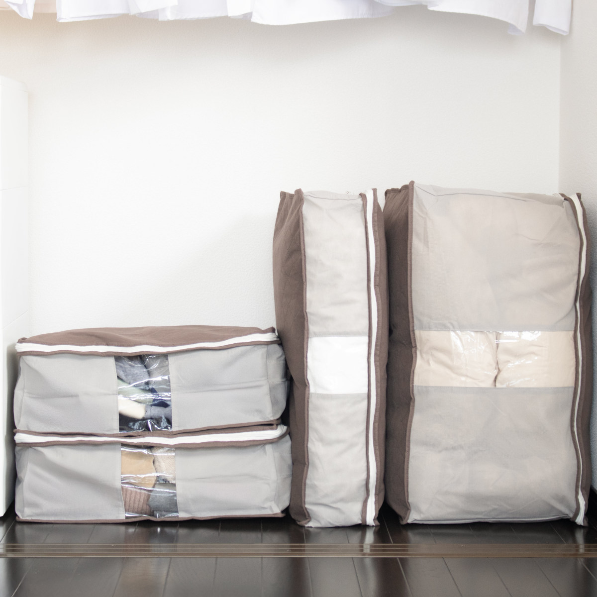 大切な衣類をホコリや汚れから守りながら、コンパクトに収納できます。