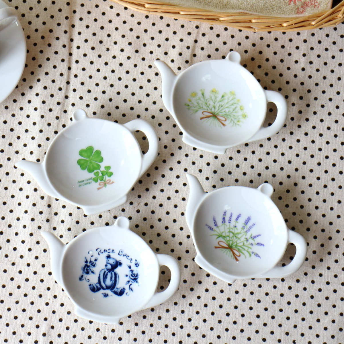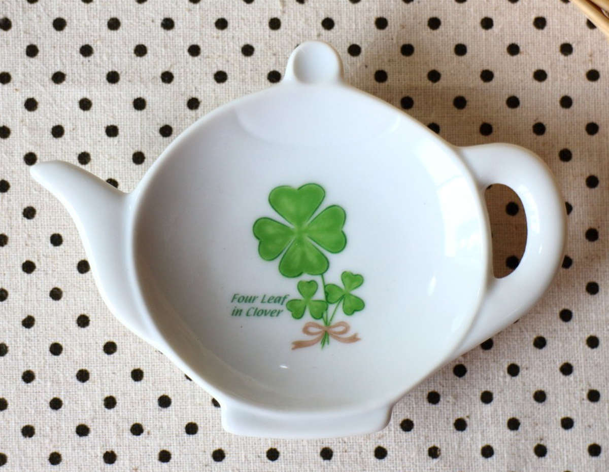 皿 トレイ かわいいポット型 ティーバック ( 小皿 お皿 プレート 電子レンジ対応 食洗機対応 陶磁器 瀬戸焼 日本製 おしゃれ ティーバッグトレイ ティーバッグ 紅茶 トレー ) 【クローバー】