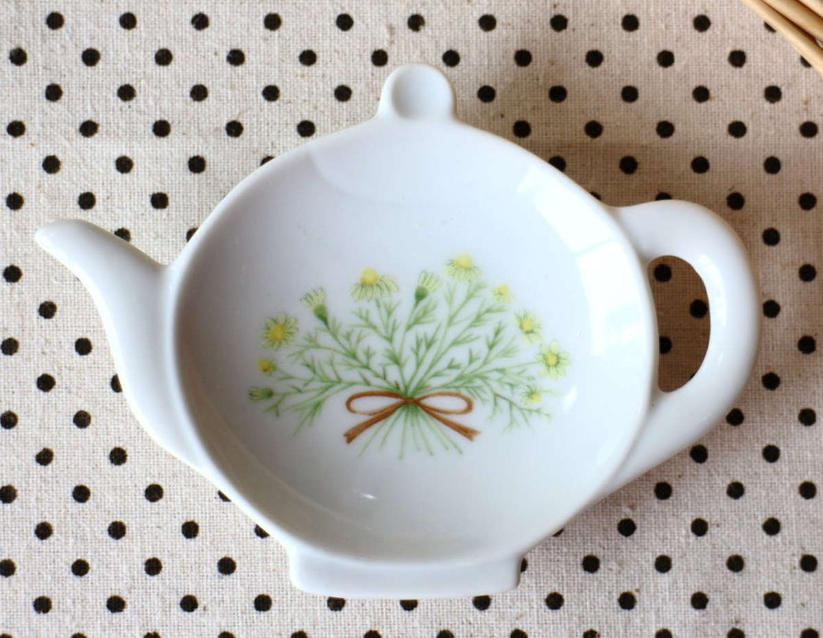 かわいいティーポット型のデザインのティーバッグトレイです。ティーバッグを置くだけでなく、お菓子やおつまみを盛る小皿としても活躍し、毎日のティータイムや来客時を華やかに彩ります。