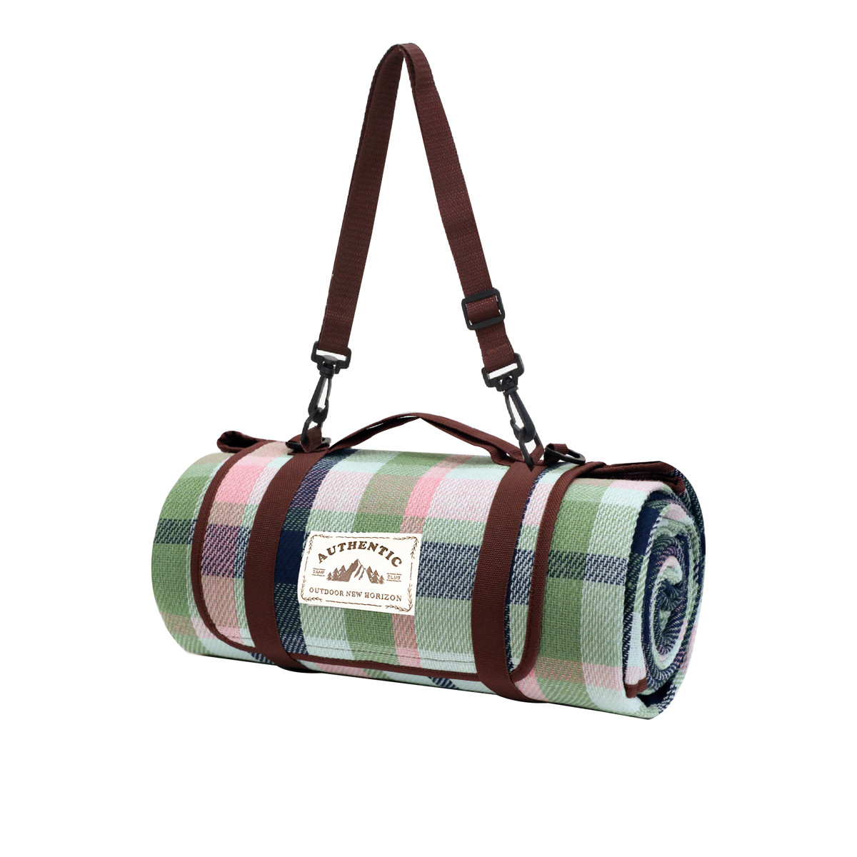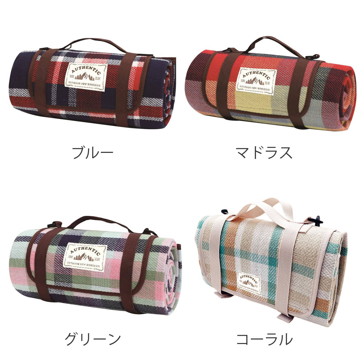 レジャーシート オーセンティック チェック S 130×150cm コンパクト ( レジャーマット ピクニックシート ピクニック マット 大判 厚手 起毛 ピクニックマット 敷物 3人用 4人用 5人用 大きい ショルダーベルト付き ) 【グリーン】
