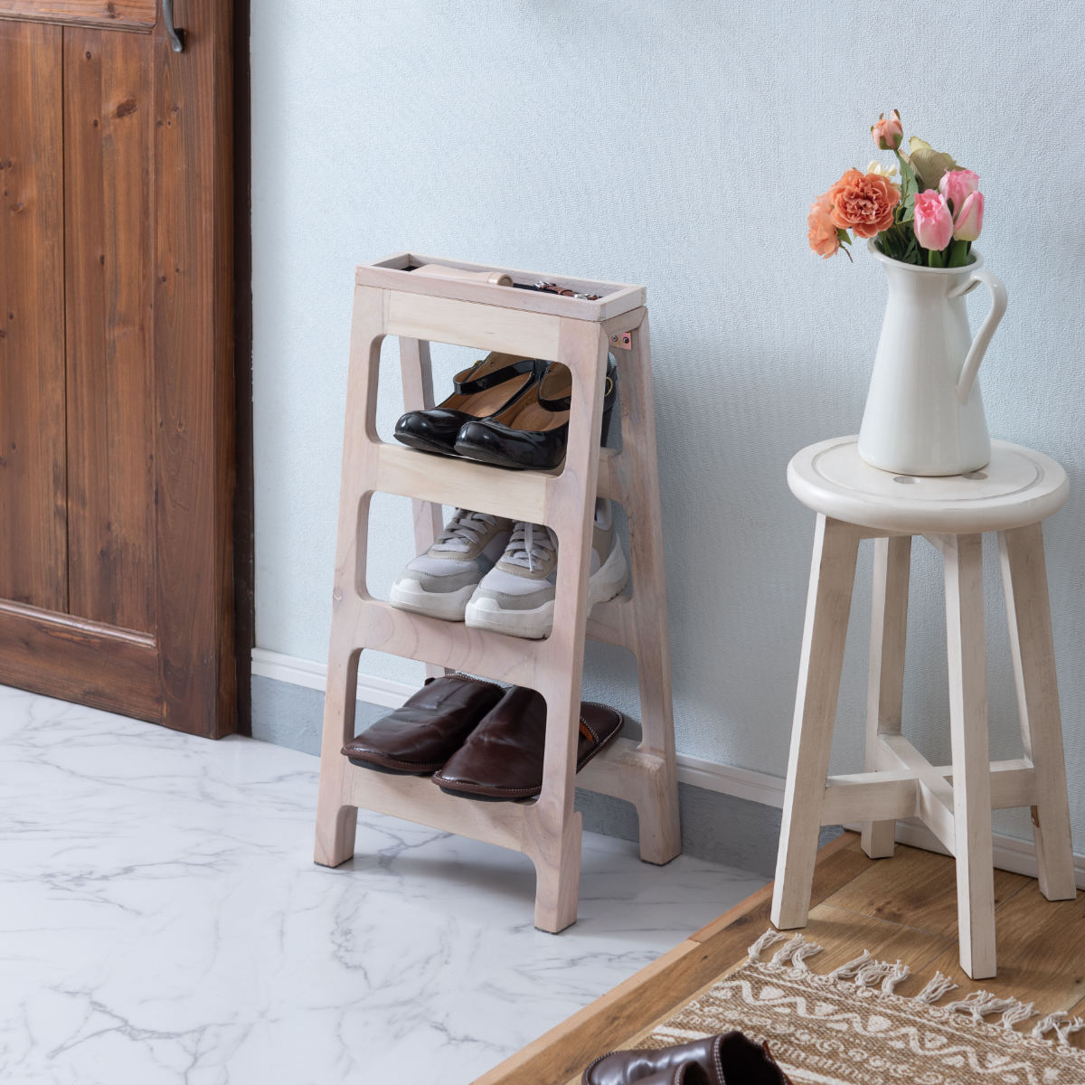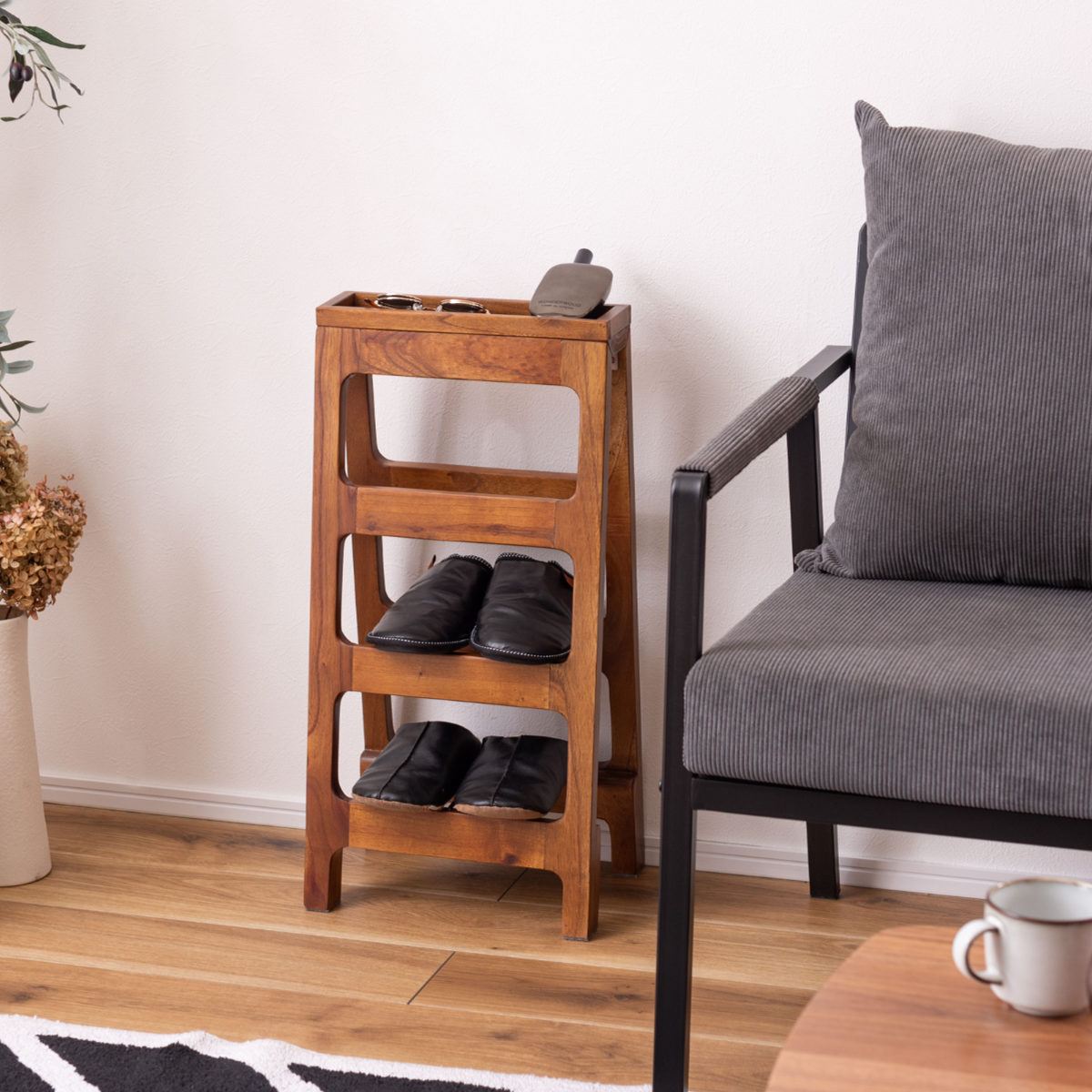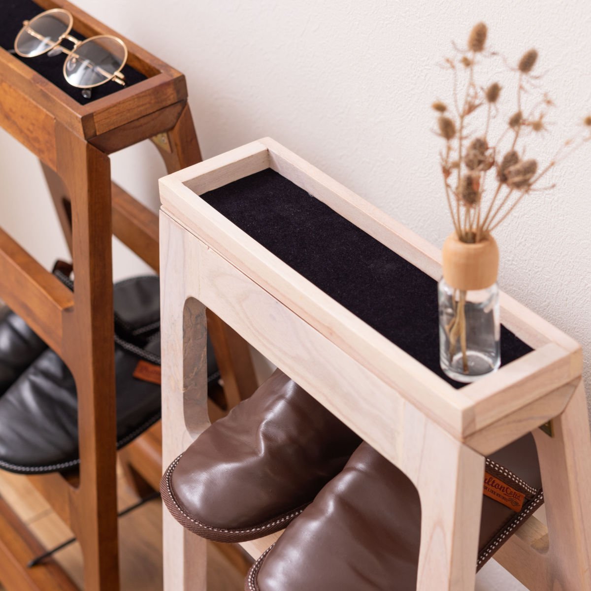 必要最小限の靴だけを美しく並べられる、たくさんの収納を求めていない方のためのシューズラックです。気に入った3足だけを飾るように収納でき、ミニマルライフに相応しい靴収納です。
