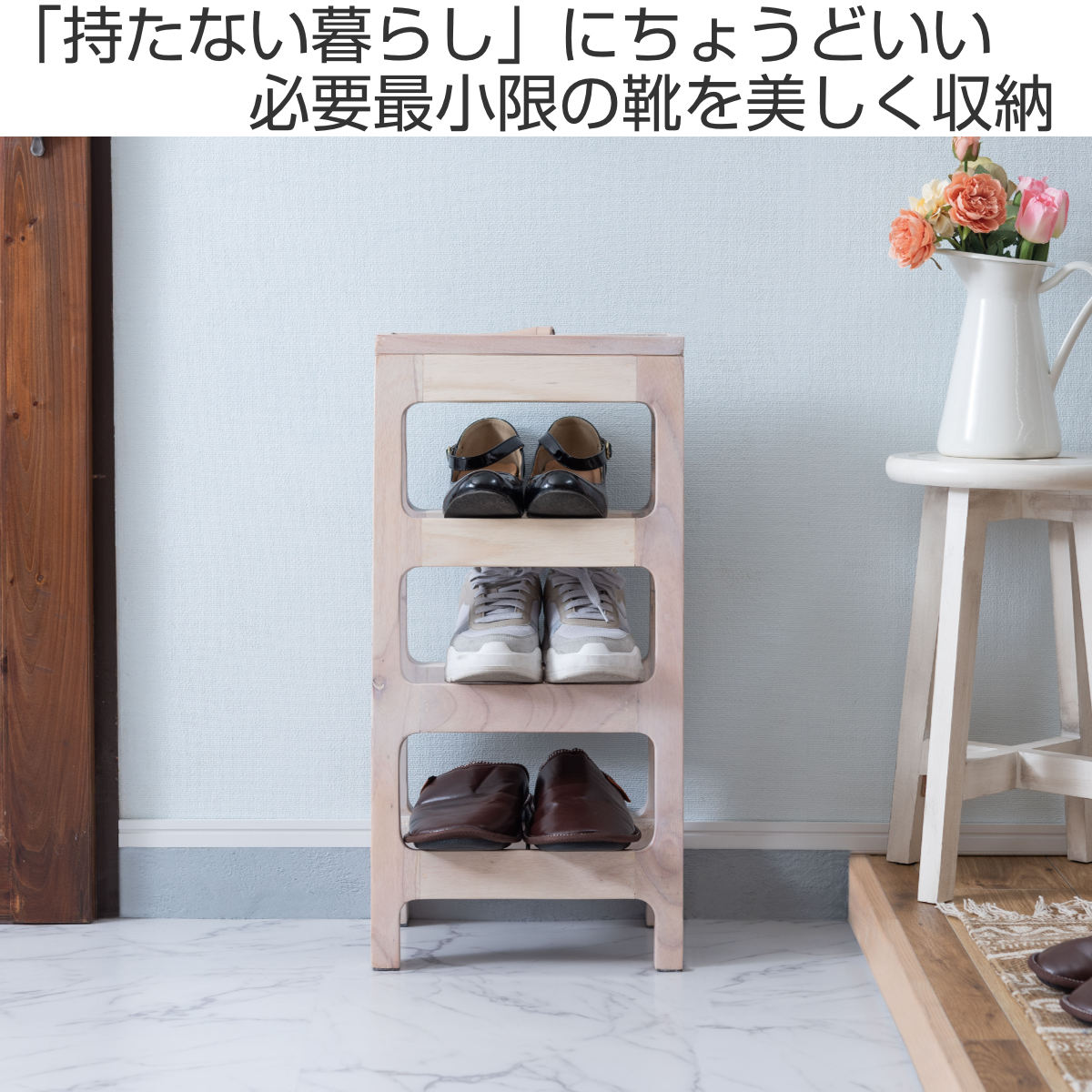 下駄箱 シューズラック 3段 木製 ( 玄関 靴 収納 コンパクト ミニマム 3足 天然木 スリッパラック スリム 完成品 幅32cm 一人暮らし ワンルーム シューズ ラック 収納棚 おしゃれ 棚 ディスプレイラック ) 【ブラウン】